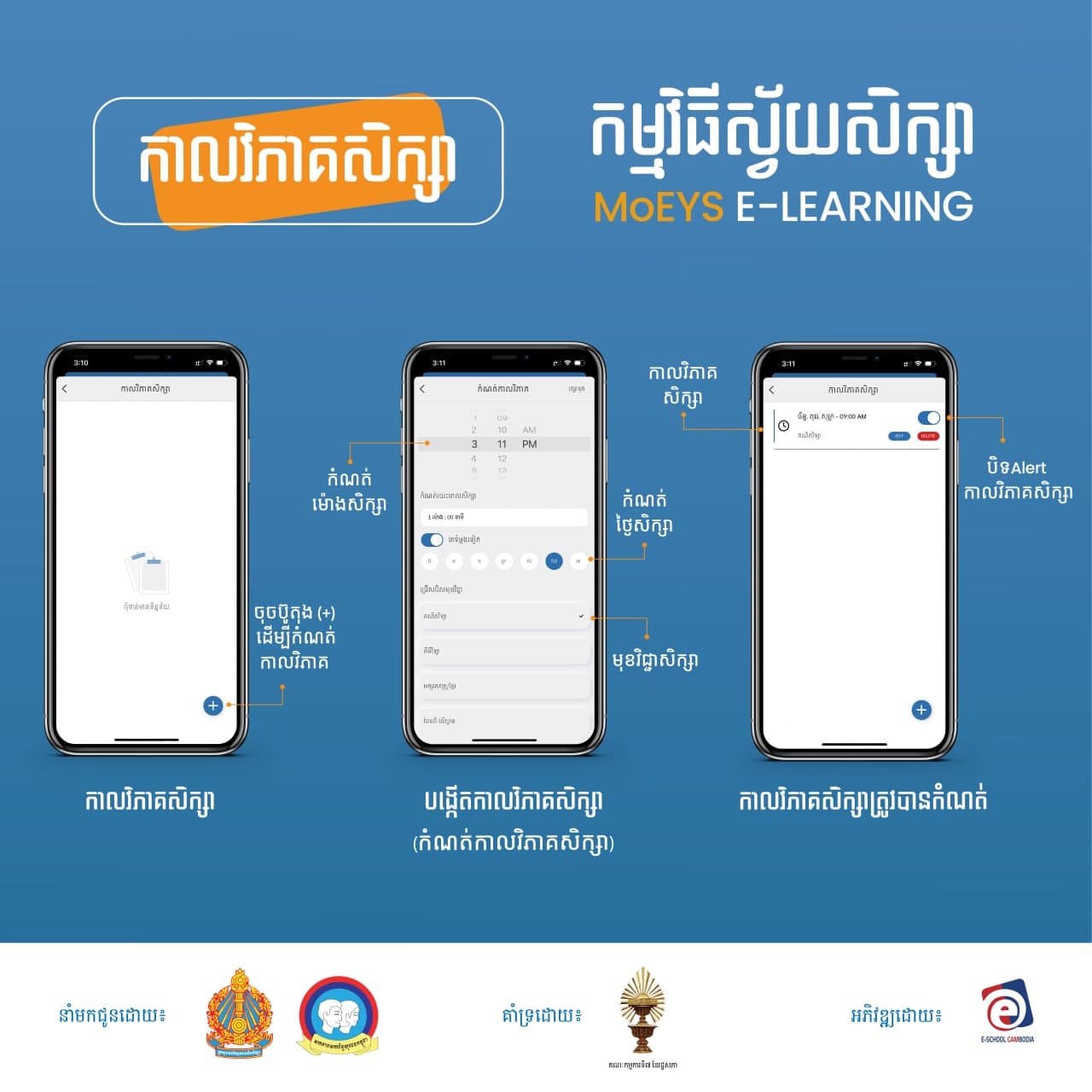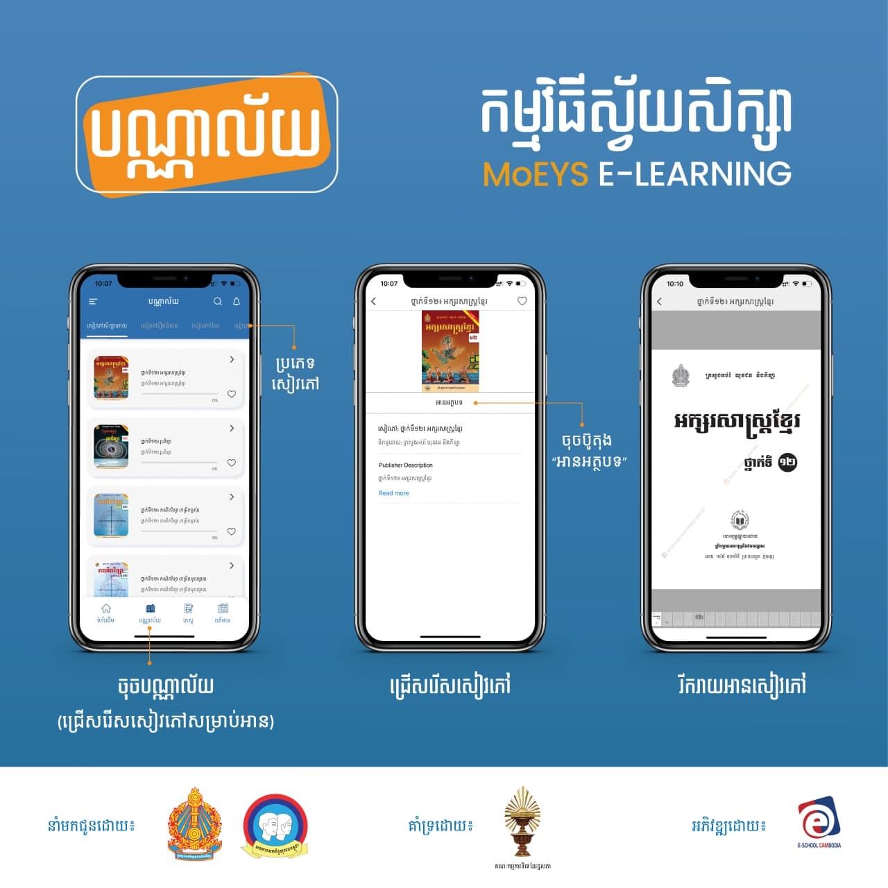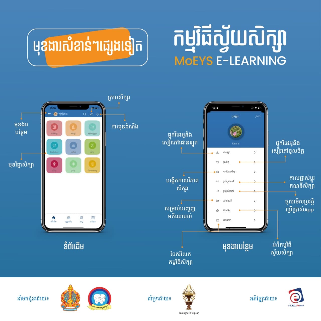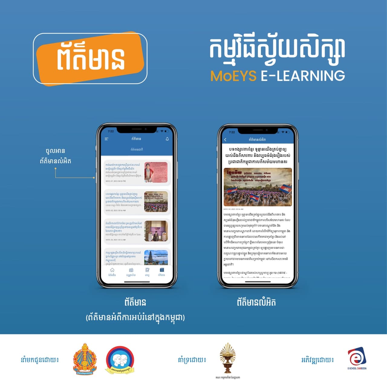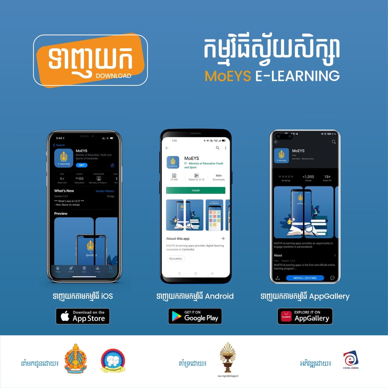 ភ្នំពេញ៖ ដូចការគ្រោងទុកនៅថ្ងៃសុក្រនេះ ក្រសួងអប់រំ យុវជន និងកីឡា និងសហភាពសហព័ន្ធយុវជនកម្ពុជា បានសហការដាក់ដំណើរការកម្មវិធីទូរស័ព្ទ ដែ​ល​មានឈ្មោះថា កម្មវិធីស្វ័យសិក្សា MoEYS E-Learning សម្រាប់សិស្សានុសិស្ស គ្រូបង្រៀន និងសាធារណជន។ ការដាក់ដំណើរការកម្មវិធីទូរស័ព្ទរបស់ក្រសួងអប់រំនៅពេលនេះ នឹងចូ​ល​រួមលើកស្ទួយគុណភាព និងសមធម៌នៃការអប់រំនៅកម្ពុជាតាមរយៈការប្រើប្រាស់បច្ចេកវិទ្យាព័ត៌មានវិទ្យាឱ្យកាន់តែទូលំទូលាយ ឆ្លើយតបទៅនឹងទស្សនទានគន្លងជីវិតថ្មីក្នុងវិ​ស័​យអប់រំកម្ពុជា។