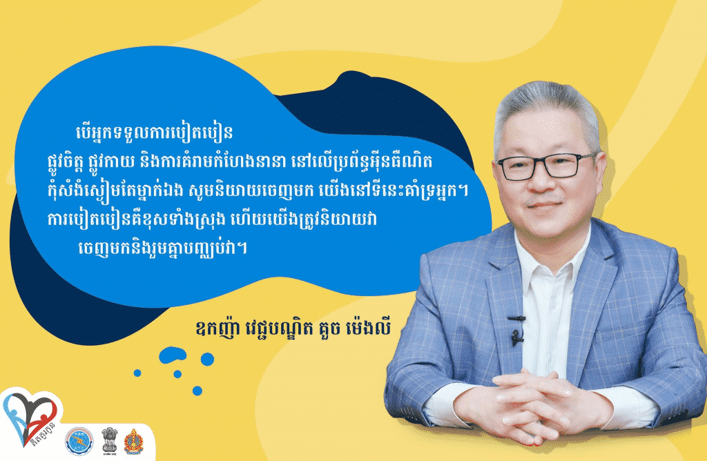 ចំណែកលោកឧកញ៉ាវេជ្ជបណ្ឌិត គួច ម៉េងលី មានប្រសាសន៍តាមរយៈការផ្សព្វផ្សាយរបស់ក្រសួងប្រៃសនីយ៍ និងទូរគមនាគមន៍ថា បើអ្នកទទួលការបៀតបៀនផ្លូវចិត្ត ផ្លូវកាយ និងការគំរាមគំហែងនានានៅលើប្រព័ន្ធអ៊ីនធឺណែតកុំសំងំស្ងៀមតែម្នាក់ឯង។ លោកវេជ្ជបណ្ឌិត បានបន្តថា មនុស្សគ្រប់គ្នារងចាំលើកទឹកចិត្តជនរងគ្រោះឱ្យនិយាយ និងរាយការណ៍អំពីការបៀតបៀនគ្រប់ទម្រង់មិនថាក្នុងរូបភាពបែបណានោះទេ។