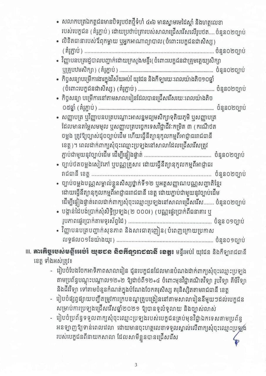 ចាប់ផ្ដើមទទួលពាក្យចាប់ពីថ្ងៃជូនដំណឹងនេះ ផុតកំណត់ទទួលពាក្យចាប់ពីថ្ងៃទី៣១ ខែសីហា ឆ្នាំ២០២១ បេក្ខជនអាចទាញយកពាក្យស្នើសុំតាមរយៈតំណភ្ជាប់ https://bit.ly/3yp17ym សម័យប្រឡងធ្វើឡើងនៅថ្ងៃទី១៦ ខែកញ្ញា ឆ្នាំ២០២១ ៕