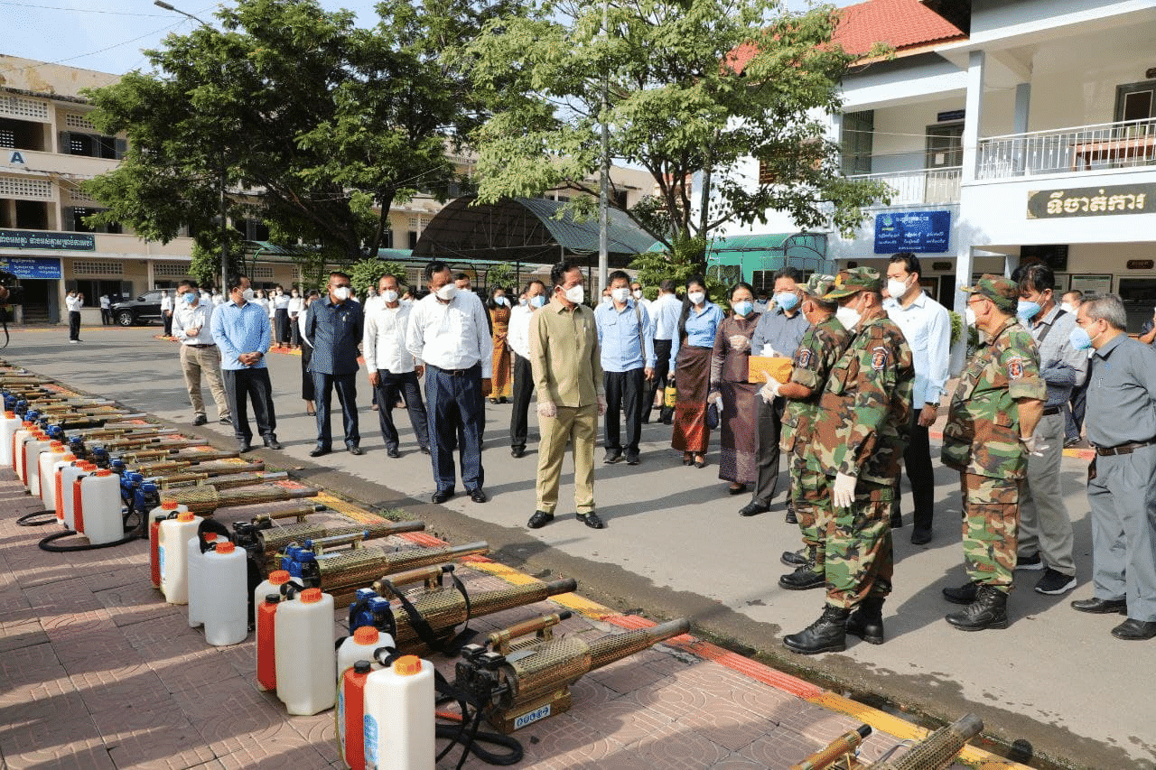 ភ្នំពេញ – ឯកឧត្តម ឃួង ស្រេង អភិបាលនៃគណៈអភិបាលរាជធានីភ្នំពេញ បានដឹកនាំការបើកយុទ្ធនានៃការបាញ់ថ្នាំសម្លាប់មេរោគនៅវិទ្យាល័យជា ស៊ីម សន្ធរម៉ុក ស្ថិតនៅក្នុងសង្កាត់ទឹកល្អក់ទី១ ខណ្ឌទួលគោក រាជធានីភ្នំពេញ ។ យុទ្ធនាការនេះបានចូលរួមពីអភិបាលនៃគណៈអភិបាលខណ្ឌទាំង១៤ មន្ត្រីនៃមន្ទីរពាក់ព័ន្ធនិងកងកម្លាំងនៃកងពលតូចលេខ៧០ ជាង ៥០នាក់ ។ យុទ្ធនាការបាញ់ថ្នាំសម្លាប់មេរោគនៅតាមបណ្ដាសាលានានានៅទូទាំងរាជធានីនៅថ្ងៃចន្ទនេះ ដើម្បីត្រៀមដំណើរបើកសាលារៀនឡើងវិញចាប់ពីអនុវិទ្យាល័យដល់វិទ្យាល័យ ប៉ុន្តែត្រូវតែអនុវត្តគោលការណ៍ប្រតិបត្តិស្តង់ដារ (SOP) សម្រាប់ដំណើរការគ្រឹះស្ថានសិក្សាបើកឡើងវិញ ។