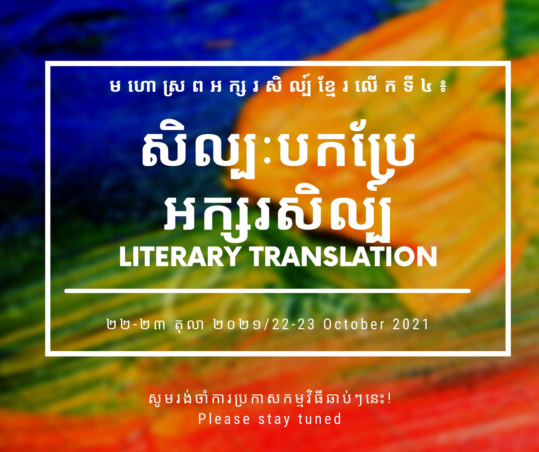 ភ្នំពេញ – មហោស្រពអក្សរសិល្ប៍ខ្មែរលើកទី៤ នឹងប្រារព្ធជាផ្លូវការក្រោមប្រធានបទ “សិល្បៈនៃការបកប្រែអក្សរសិល្ប៍” ចាប់ពីថ្ងៃទី ២២ ដល់ថ្ងៃទី២៣ ខែតុលា ឆ្នាំ២០២១ តាមរយៈអនឡាញ ។ នេះជាឆ្នាំទី ៤ ហើយនៃការប្រព្រឹត្តិទៅកម្មវិធីមហោស្រពអក្សរសិល្ប៍ខ្មែរ ក្រោយទទួលបានជោគជ័យជាច្រើនឆ្នាំជាប់ៗគ្នា។