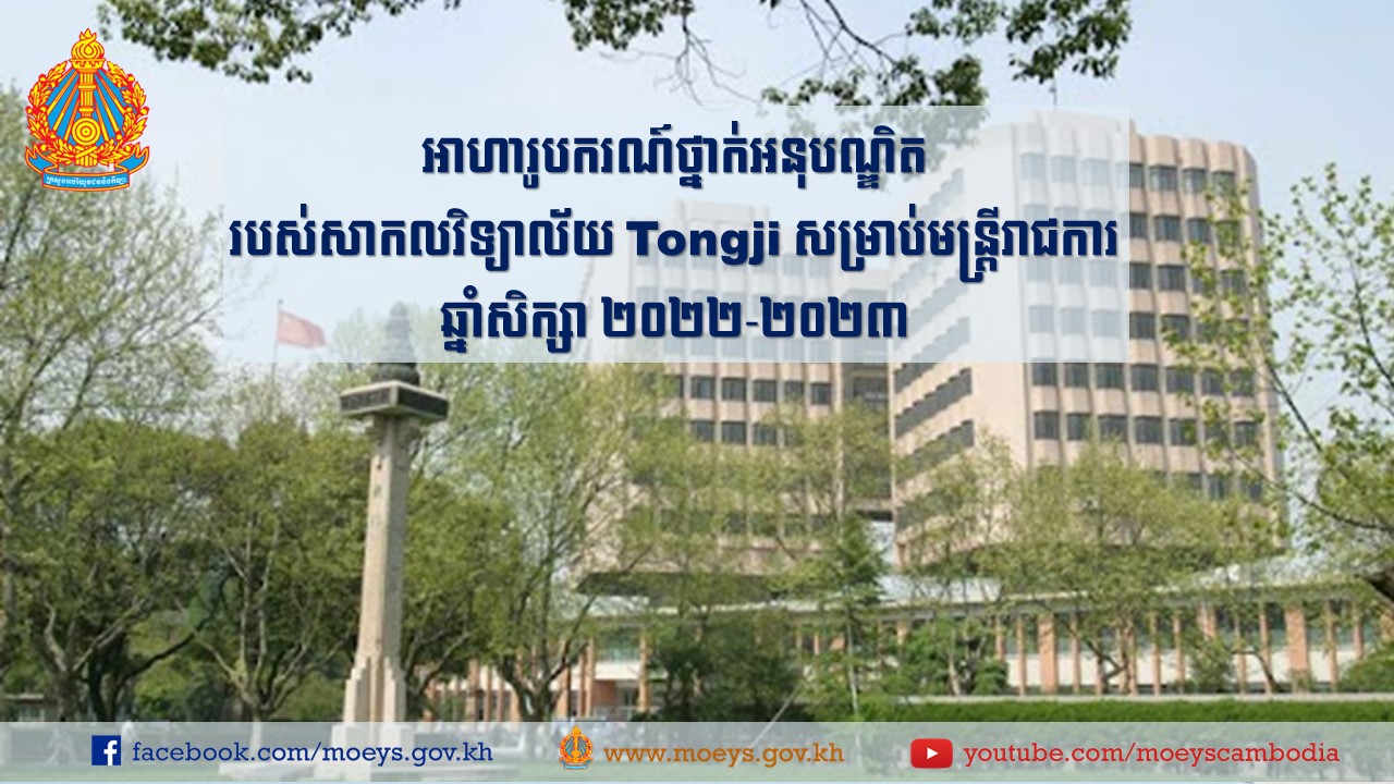 សាកលវិទ្យាល័យTongJi បានប្រកាសផ្ដល់អាហារូបករណ៍ថ្នាក់បរិញ្ញាបត្រជាន់ខ្ពស់សម្រាប់មន្ត្រីរាជការ ចំនួន៣០កន្លែង ។ កម្មវិធីអាហារូបករណ៍នេះទទួលបានការឧបត្តម្ភដោយក្រសួងពាណិជ្ជកម្មចិន ដល់មន្រ្តីរាជការបរទេសទូទាំងពិភពលោករួមទាំងប្រទេសកម្ពុជាផងដែរ ។