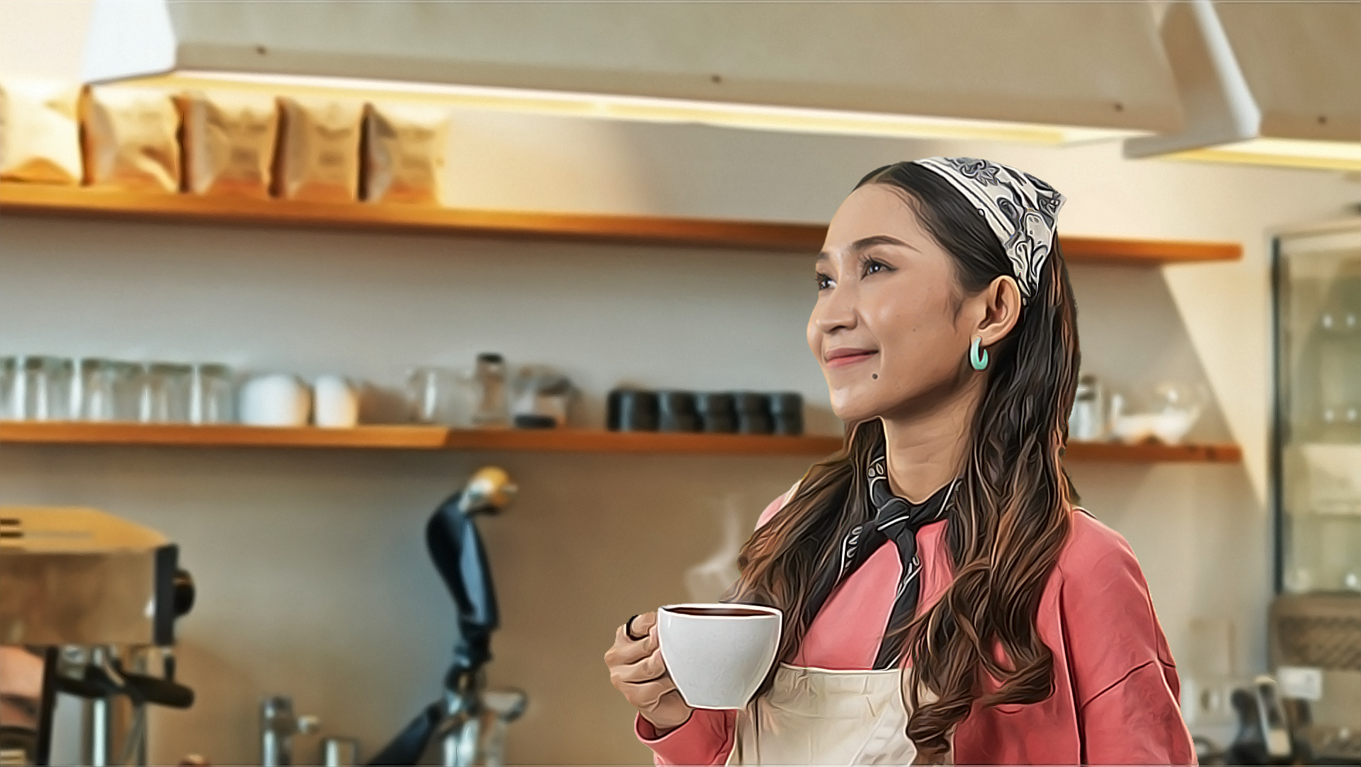 ពិដោរ គឺជាម្ចាស់ហាងវ័យក្មេង ទឹកមុខតែងតែបង្ហាញនូវស្នាមញញឹមជានិច្ច។ ស្ថិតនៅក្នុងឈុតសម្លៀកបំពាក់យុវវ័យ ពាក់អៀមឆុងកាហ្វេ កំពុងសម្រិតសម្រាំង កាន់ពែងកាហ្វេឆុងទាំងញញឹម និងមានទឹកមុខពោរពេញដោយមោទកភាព រីឯក្លិន និងរសជាតិនៃកាហ្វេវិញ ឆុងឡើងពោរពេញដោយក្ដីស្រលាញ់។ ពិដោរដាក់ពែងកាហ្វេចុះ សម្លឹងមើលទៅហាងដែលមានសភាពស្ងប់ស្ងាត់ ភ្ញៀវនៅទីនោះទាំងអស់សុទ្ធតែអតិថិជនប្រចាំ និងអ្នកដែលរស់នៅជាប់ៗហាង។ ពិដោរ បិតភ្នែកស្រង់ក្លិនកាហ្វេរបស់ខ្លួន ហើយស្រមៃ………ឃើញហាងរបស់នាង មានមនុស្សពេញ កំពុងសន្ទនាគ្នាយ៉ាងក្អាកក្អាយ មានឡានម៉ូតូចេញចូលយ៉ាងកុះករ តាំងពីភ្ញៀវដែលជាសិស្ស-និស្សិតរហូតដល់ភ្ញៀវដែលជាអ្នកធ្វើការ និងអ្នកជំនួញ។