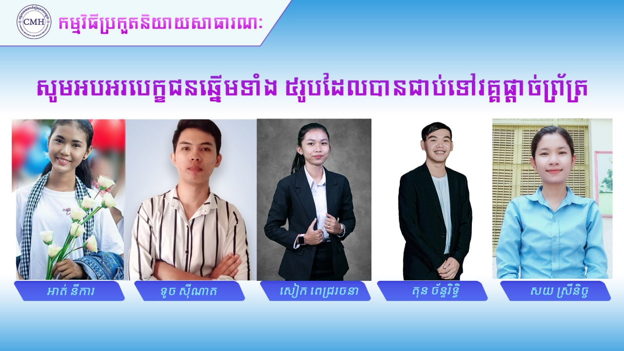 ក្នុងកម្មវិធីប្រកួតនិយាយជាសាធារណៈលើប្រធានបទ “ហេតុអ្វីបានជាកម្ពុជាចាំបាច់ត្រូវដំឡើងពន្ធថ្នាំជក់?” កាលពីពេលថ្មីៗនេះ គេបានរកឃើញបេក្ខជន ៥រូបនឹងបន្តទៅ