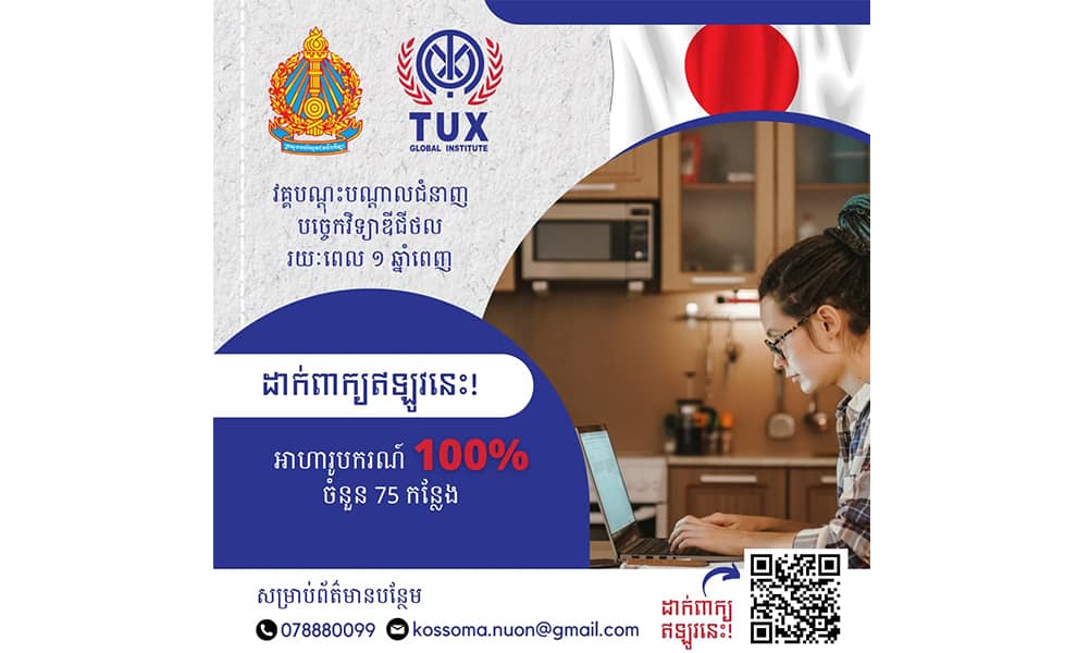 ភ្នំពេញ៖ វិទ្យាស្ថានថាក់គ្លូប៊ល (Tux Global Institute) ផ្ដល់អាហារូបករណ៍ផ្នែកបច្ចេកវិទ្យាឌីជីថលដែលមាន UX/UI Design, Digital Marketing, App/Web Design ចំនួន