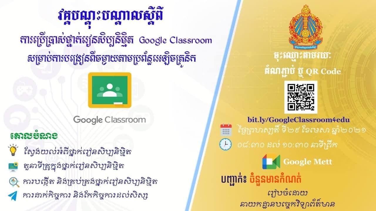 ក្រសួងអប់រំបើកវគ្គបណ្ដុះបណ្ដាលការប្រើប្រាស់ថ្នាក់រៀនសិប្បនិមិ្មត Google Classroom ដល់បុគ្គលិកអប់រំ