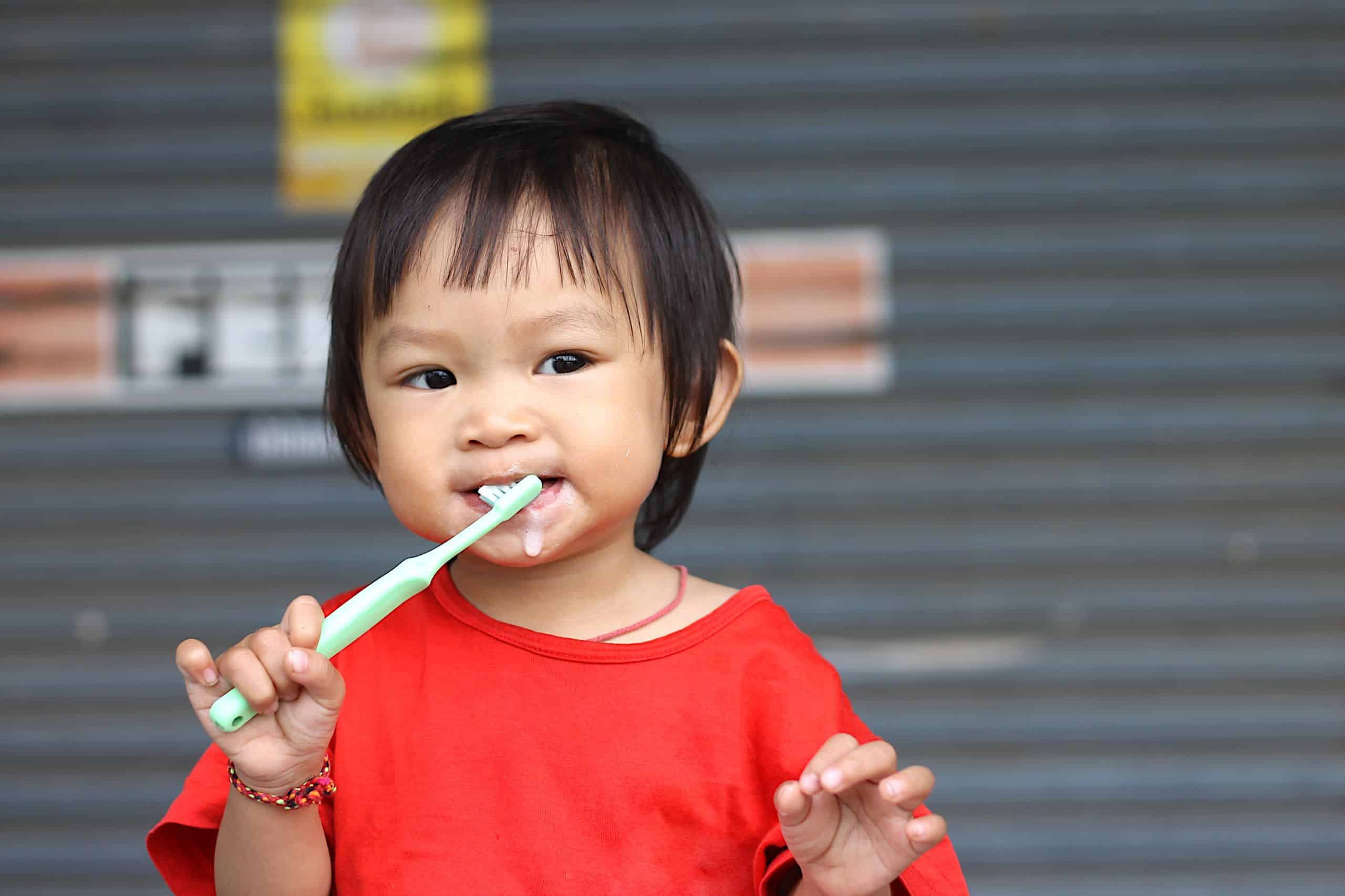 ការបង្រៀនឱ្យកុមារចេះសម្អាតមាត់ធ្មេញអាចរៀនតាមរយៈការប្រើប្រាស់ App តុក្កតាបង្រៀនដុសធ្មេញជាជំនួយ ដើម្បីលើកទឹកចិត្តកុមារឱ្យចាប់ផ្តើមទម្លាប់ដុសធ្មេញ ព្រោះនៅអាយុនេះកុមារចូលចិត្តរៀនធ្វើតាមមនុស្សធំណាស់ ។ គួរកត់ចំណាំថា នៅអាយុនេះត្រូវជ្រើសរើសថ្នាំដុសធ្មេញដែលមានហ្ល្វុយអររ៉ាយកំហាប់តិច (អាចមើលបាននៅលើទីបថ្នាំដុសធ្មេញ ឬគេសសេរថាសម្រាប់កុមារ) ហើយដាក់ទំហំថ្នាំដុសធ្មេញតូចប៉ុនគ្រាប់សណ្តែកបាយប៉ុណ្ណោះ ជៀសវាងគាត់លេបចូលពោះដែលអាចបណ្តាលឱ្យលើសជាតិហ្ល្វុយអររ៉ាយ។ បើគាត់ចូលចិត្តលេបថ្នាំដុសធ្មេញ យើងអាចដុសតែជាមួយនឹងច្រាសធម្មតា និងទឹកប៉ុណ្ណឹងសិនបានហើយ ។