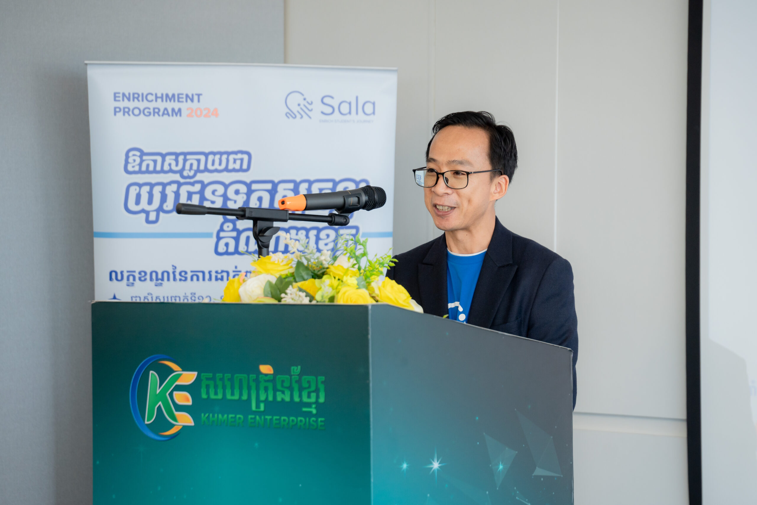 សូមជម្រាបជូនថា គម្រោង “Sala Enrichment Program” ត្រូវបានផ្ដួចផ្ដើមឡើងដោយ​ សាលា (Sala) ដែលទទួលបានការគាំទ្រពីកម្មវិធីការគាំទ្រការវិនិយោគសម្រាប់សហគ្រិន (EIS) និងក្រសួងអប់រំ យុវជន និងកីឡា។ កម្មវិធី EIS ត្រូវបានអនុវត្ដរួមគ្នារវាងសហគ្រិនខ្មែរ និងអង្គការស្វីសខន់ថាក់ ដោយទទួលបានការសហការឧបត្ថម្ភថវិកាគាំទ្រដោយសហគ្រិនខ្មែរ (KE) ភា្នក់ងារស្វីសសម្រាប់ការអភិវឌ្ឍនិងកិច្ចសហប្រតិបត្ដិការ (SDC) និងភ្នាក់ងារសហប្រតិបត្ដិការអន្ដរជាតិកូរ៉េ(KOIKA)៕
