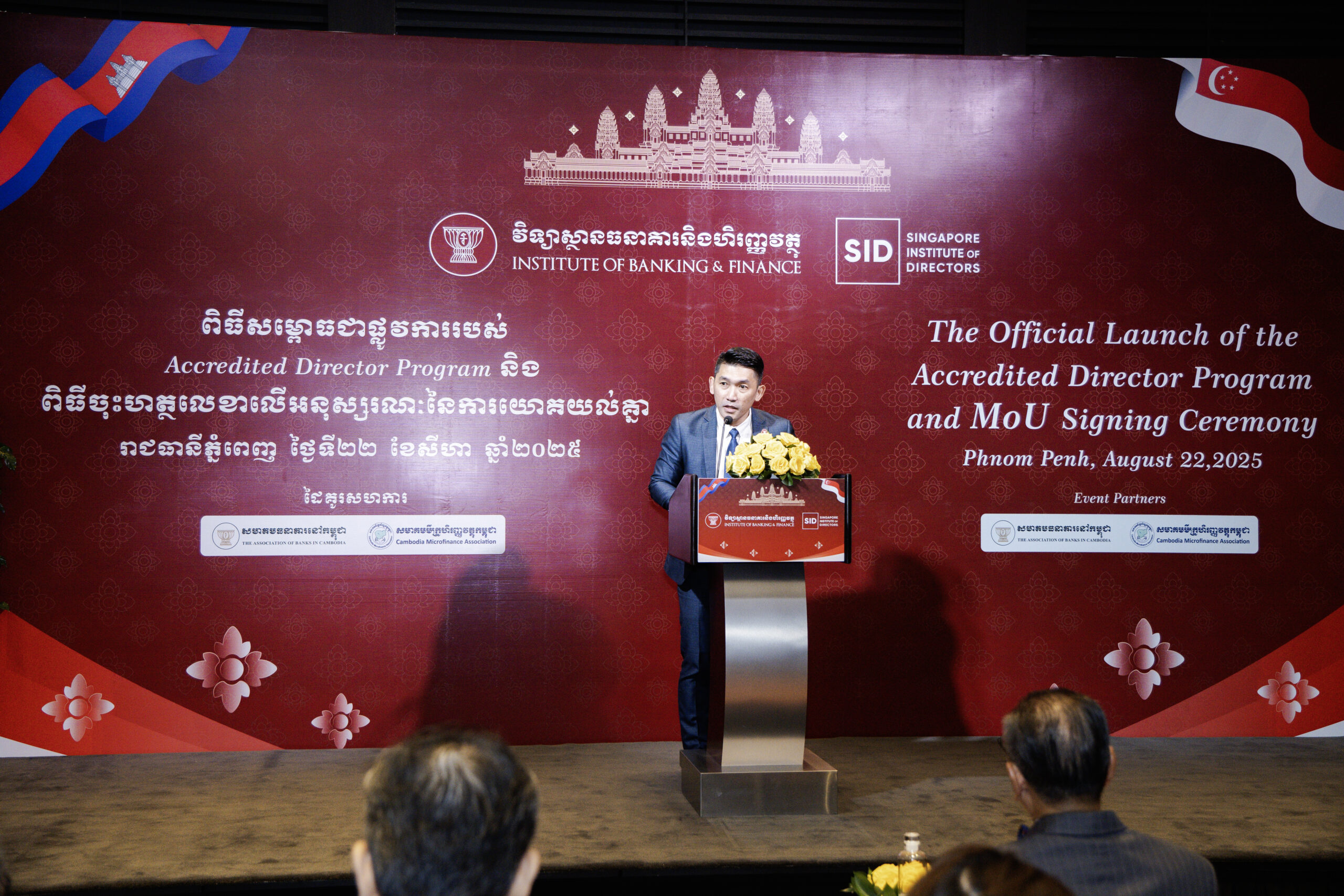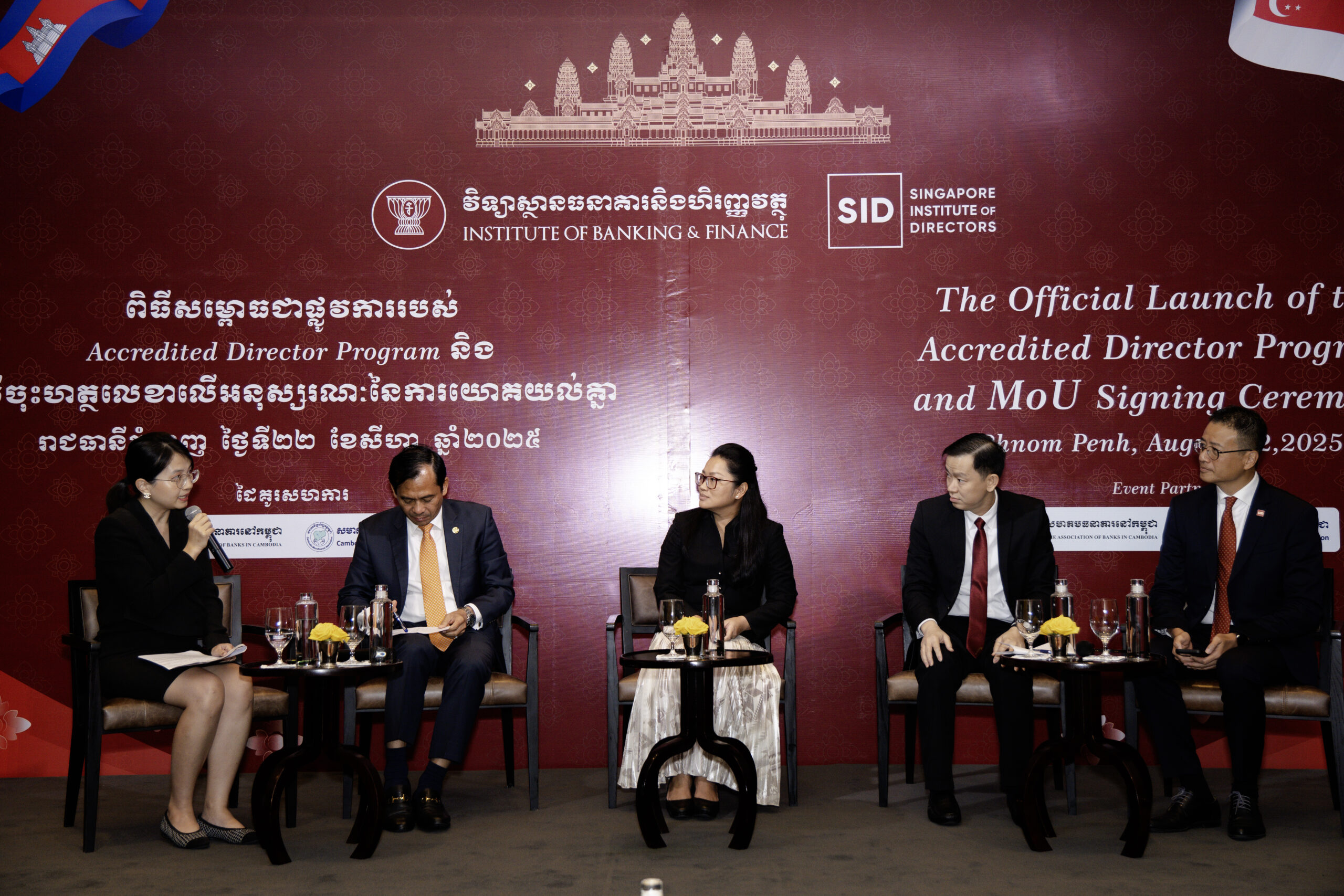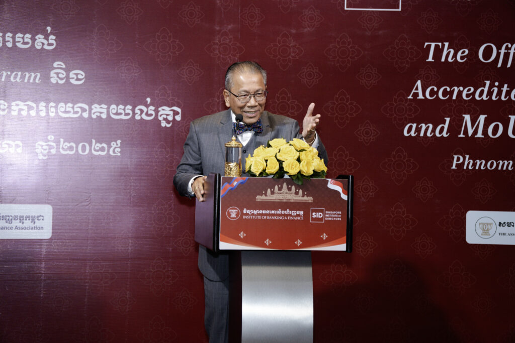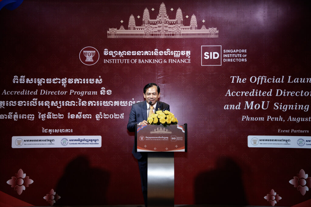 Phnom Penh, 22 August 2025 – The Institute of Banking and Finance (IBF) today marked a significant milestone in its commitment to professional excellence with the launch of its flagship Directorship Program and the signing of a pivotal Memorandum of Understanding (MoU) with the esteemed Singapore Institute of Directors (SID). The ceremony, held in Phnom Penh, signifies a powerful collaboration and a concerted effort to elevate corporate governance standards and cultivate a new generation of effective leaders within the Kingdom’s financial institutions.