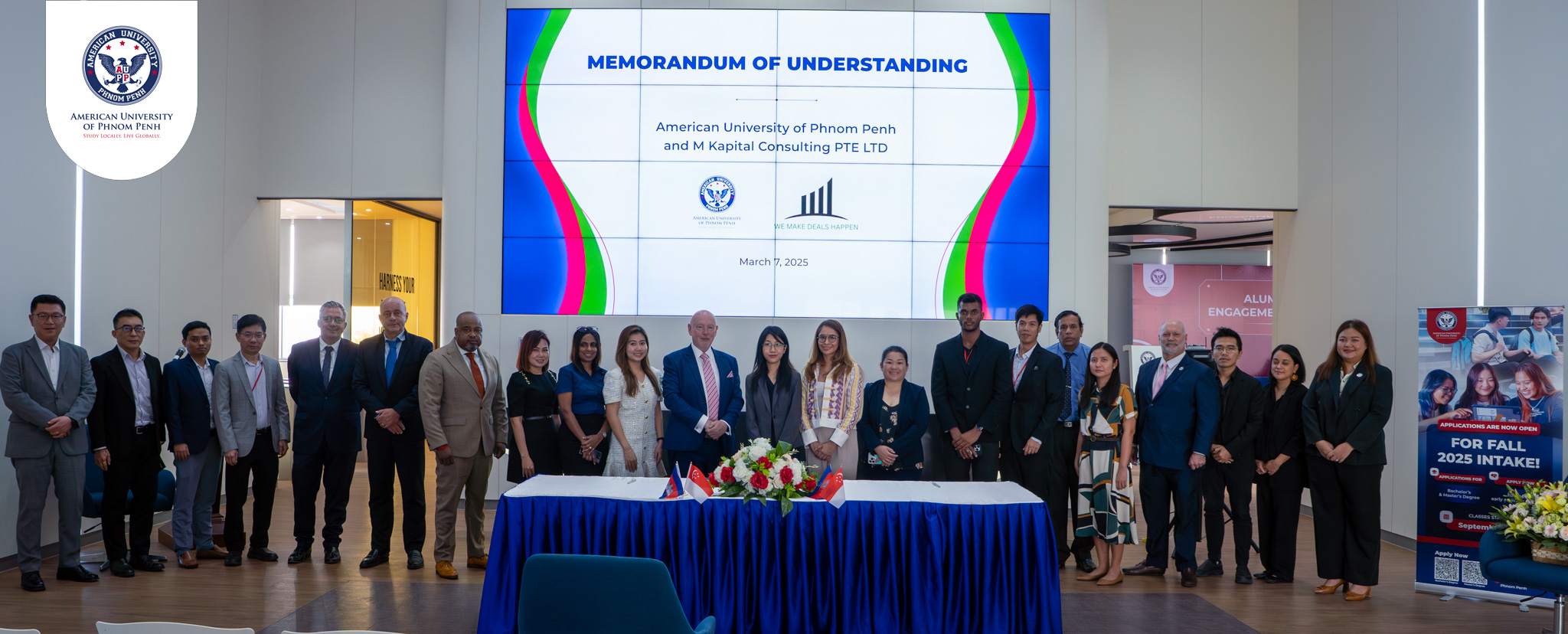 សាកលវិទ្យាល័យអាមេរិកាំងភ្នំពេញ (AUPP) សូមប្រកាសភាពជាដៃគូជាមួយក្រុមហ៊ុន M Kapital Consulting ទាក់ទងនឹងមូលនិធិអាហារូបករណ៍ ROOKAIYAL AMMAL Girls’ Scholarship Fund ក្នុងគោលបំណងជួយដល់និស្សិតស្រីដើម្បីបន្តការសិក្សាថ្នាក់ឧត្តមសិក្សានៅ AUPP ។ អនុស្សរណៈនៃការយោគយល់គ្នា (MoU) ត្រូវបានដាក់ឱ្យប្រើប្រាស់ជាផ្លូវការនៅថ្ងៃទី០៧ ខែមីនា ដែលជានិមិត្តរូបនៃកិច្ចខិតខំប្រឹងប្រែងរួមគ្នា ដើម្បីបង្កើនឱកាសការសិក្សាអប់រំនិងឱកាសការងារសម្រាប់និស្សិតកម្ពុជា។