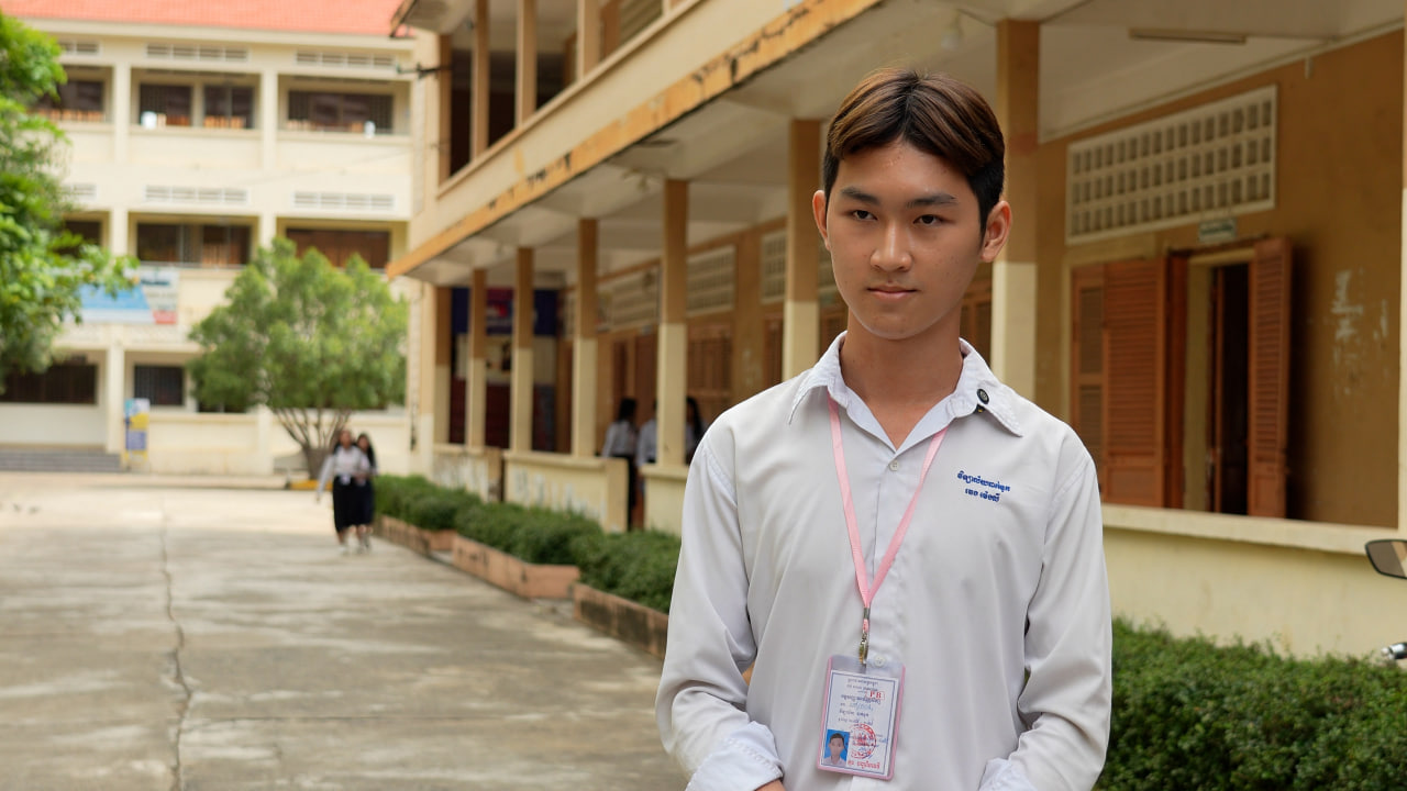 យុវសិស្ស ឆេង ម៉េងលី សិស្សថ្នាក់ទី១១ នៃវិទ្យាល័យបាក់ទូក និងជាយុវជនកាកបាទក្រហមកម្ពុជា