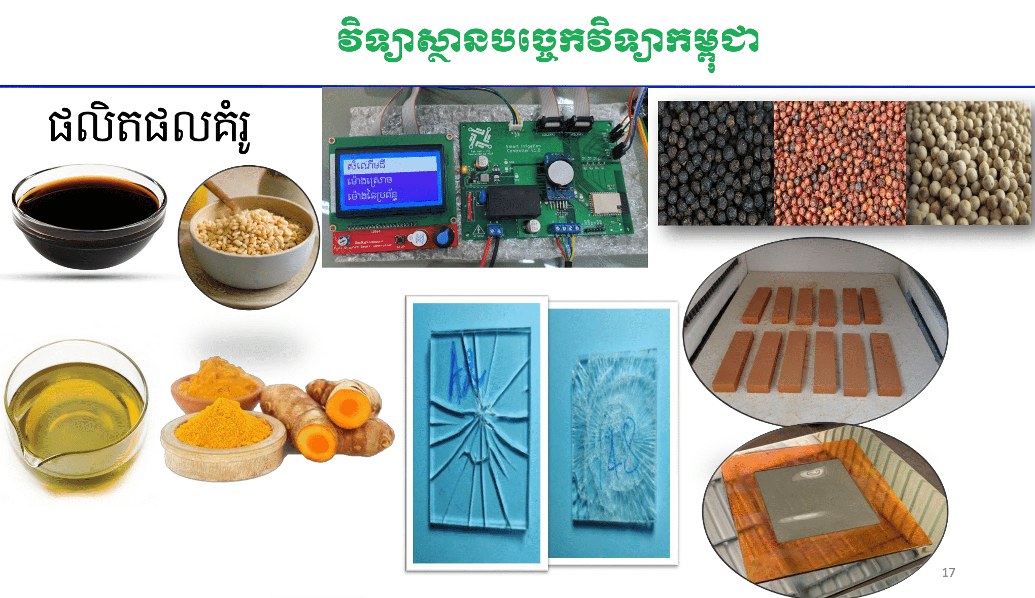 ទី២.មជ្ឈមណ្ឌលឧត្តមភាពសម្រាប់ការស្រាវជ្រាវ ត្រូវបានបង្កើតឡើងនៅក្នុងវិទ្យាស្ថានបច្ចេកវិទ្យាកម្ពុជា ដោយផ្តោតសំខាន់លើគម្រោងអនុវត្តការស្រាវជ្រាវ ការបោះពុម្ព ការផលិតនុវានុវត្តផ្សេងៗ និងសកម្មភាពធុរកិច្ច។ បច្ចុប្បន្នមជ្ឈមណ្ឌលនេះ ប្រមូលផ្តុំដោយអ្នកស្រាវជ្រាវថ្នាក់បណ្ឌិត ដោយកំពុងអនុវត្តគម្រោងស្រាវជ្រាវប្រមាណជាង ១០០គម្រោង។ កន្លងមកមជ្ឈមណ្ឌលនេះ បានស្រាវជ្រាវ និងបង្កើតផលិតផលសម្រាប់ការដាំដុះកសិកម្ម ផលិតផលផ្សេងៗជាច្រើន ដូចជា ឧបករណ៍សម្ងួតគ្រឿងទេស, ការបង្កើតជាឥដ្ឋដែលមានជាតិសេរ៉ាម៉ិច ឬជ័រជាដើម ដោយផលិតផលទាំងនោះអាចលក់ចេញបាន។