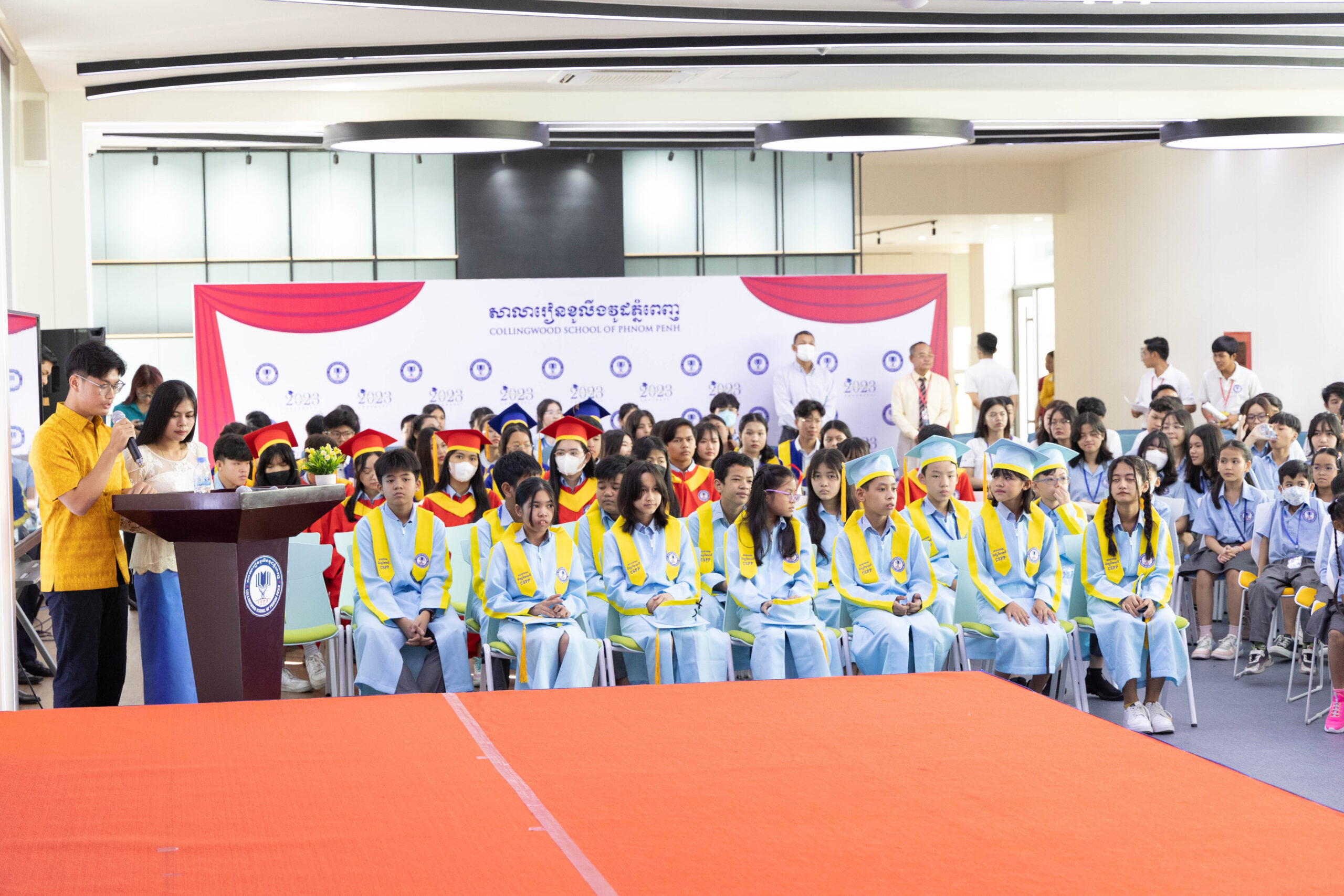 សាលារៀនខូលីងវូដភ្នំពេញ(CSPP)បានរៀបចំកម្មវិធីចែកវិញ្ញាបនបត្រ និងបណ្ណសរសើរដល់សិស្សពូកែ ដែលបានបញ្ចប់កម្មវិធីសិក្សា ក្នុងឆ្នាំសិក្សា២០២២-២០២៣ ក្រោមអធិបតីភាពដ៏ខ្ពង់ខ្ពស់របស់ ឯកឧត្តមបណ្ឌិត ជា វ៉ាន់ដេត រដ្ឋមន្ត្រីក្រសួងប្រៃសណីយ៍ និងទូរគមនាគមន៍ នៅថ្ងៃទី១៧ ខែកញ្ញា ឆ្នាំ២០២៣ នៅសកលវិទ្យាល័យអាមេរិកាំង (AUPP)។