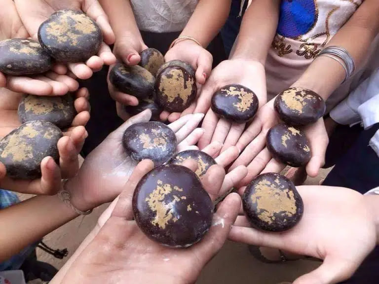 វត្ថុដែលគេយកមកលេង គឺផ្លែអង្គញ់ដែលក្រៀមស្ងួត។