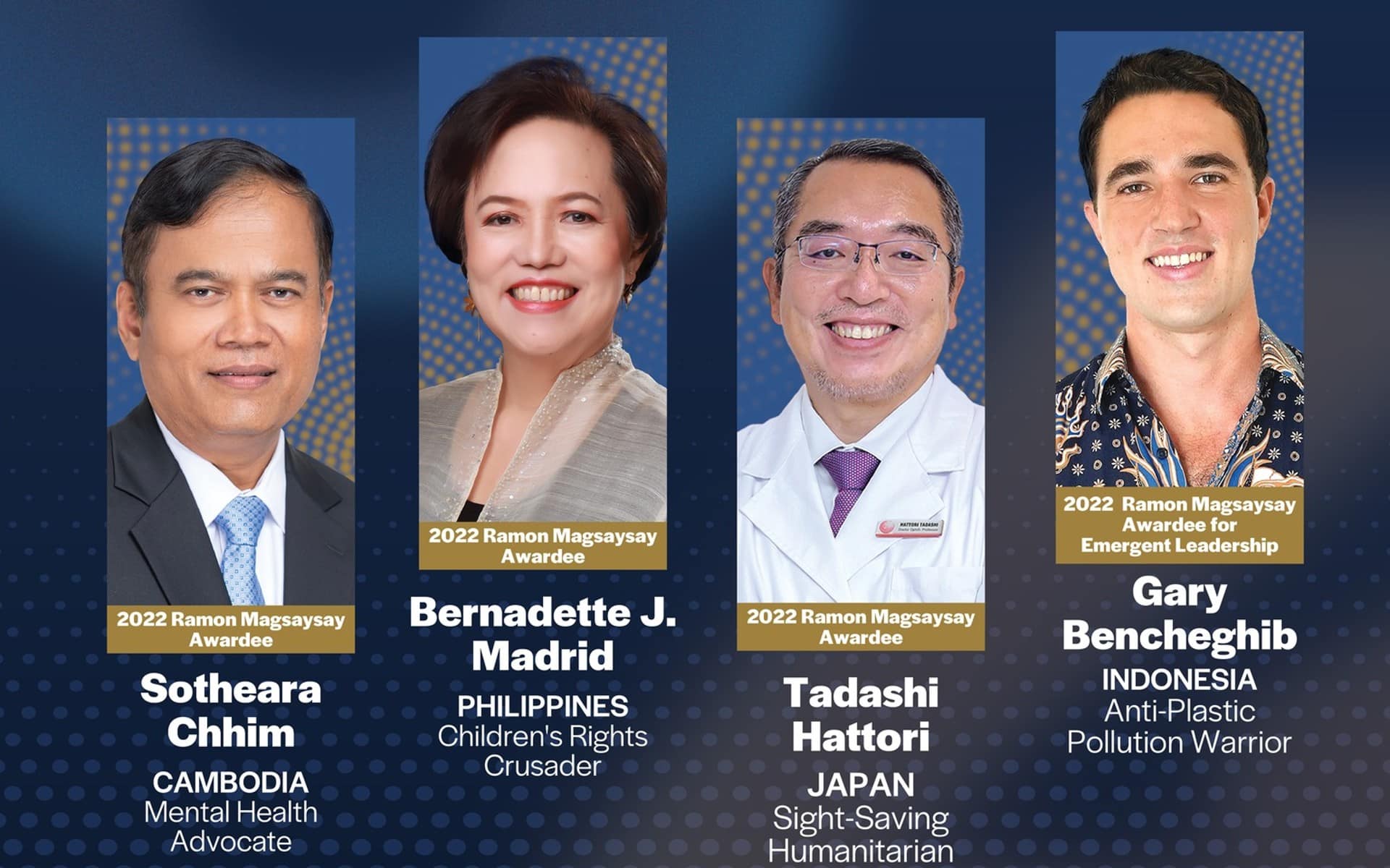 សូមជម្រាបថា នៅឆ្នាំ២០២២ ក្រៅពីលោកវេជ្ជបណ្ឌិត ឈឹម សុធារ៉ា ក៏មានបុគ្គលចំនួន ០៣រូបផ្សេងទៀតមកពីប្រទេសជប៉ុន ហ្វីលីពីន និងឥណ្ឌូនេស៊ី បានទទួលពានរង្វាន់ណូបែលអាស៊ីលើកទី ៦៤នេះដែរ។ ដោយឡែកសម្រាប់ជនជាតិខ្មែរវិញ លោកវេជ្ជបណ្ឌិត ឈឹម សុធារ៉ា ជាបុគ្គលទី៨ ដែលបានទទួលពានរង្វាន់ណូបែលអាស៊ីនេះ។