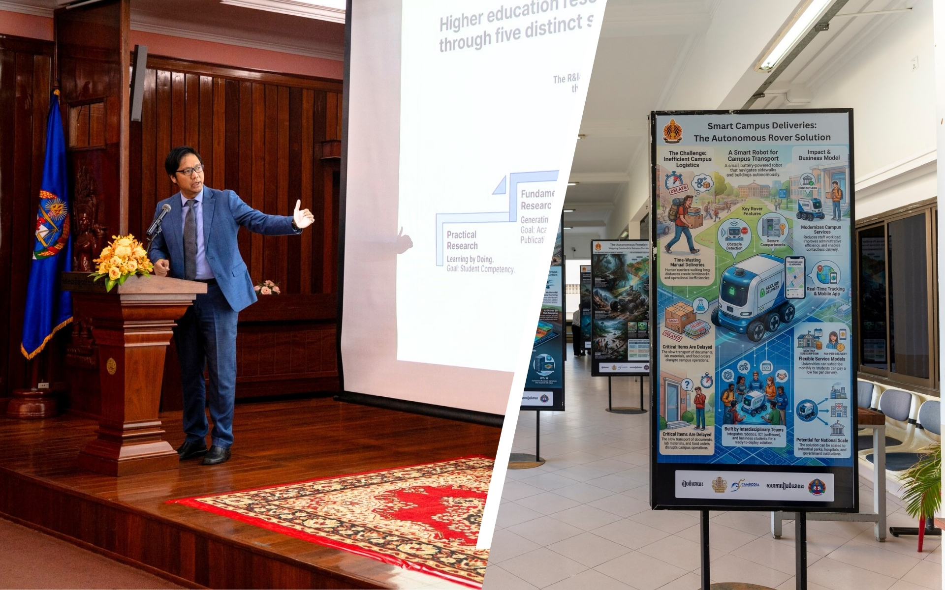 ក្នុងសិក្សាសាលាស្តីពី “ការចែករំលែកបទពិសោធនៃការអនុវត្តកម្មវិធីកំណែទម្រង់ឧត្តមសិក្សា” ធ្វើឡើងនៅវិទ្យាស្ថានបច្ចេកវិទ្យាកម្ពុជា កាលពីថ្ងៃចន្ទ ដោយមានការចូលរួមពីសាកលវិទ្យាល័យធំៗនៅកម្ពុជា ឯកឧត្តម ហង់ជួន ណារ៉ុន មានប្រសាសន៍ថា ក្រសួងអប់រំ យុវជន និងកីឡា បាននិងកំពុងយកចិត្តទុកដាក់ធ្វើទំនើបកម្មវិស័យអប់រំកម្រិតឧត្តមសិក្សាតាមរយៈការជំរុញការស្រាវជ្រាវនិងអភិវឌ្ឍន៍ ការបោះពុម្ពផ្សាយ និងការដាក់បញ្ចូលបច្ចេកវិទ្យាបញ្ញាសិប្បនិម្មិត (AI) ក្នុងប្រព័ន្ធការងារ ការរៀននិងបង្រៀន។