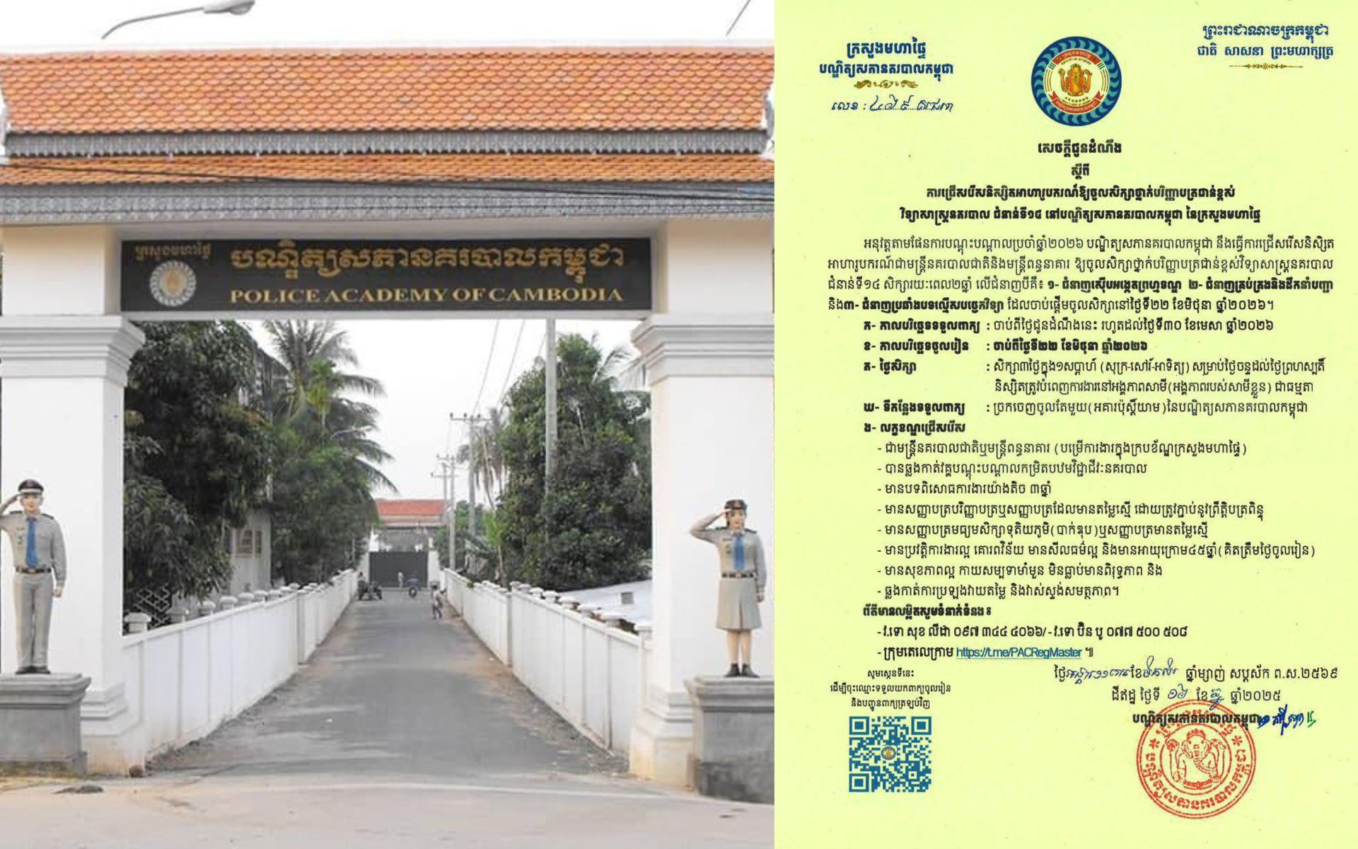 បណ្ឌិត្យសភានគរបាល​កម្ពុជា ផ្តល់អាហារូបករណ៍សម្រាប់ការសិក្សា​ថ្នាក់បរិញ្ញាបត្រជាន់ខ្ពស់ និងថ្នាក់បណ្ឌិត​វិទ្យាសាស្រ្តនគរបាល ចំនួន៤០កន្លែង