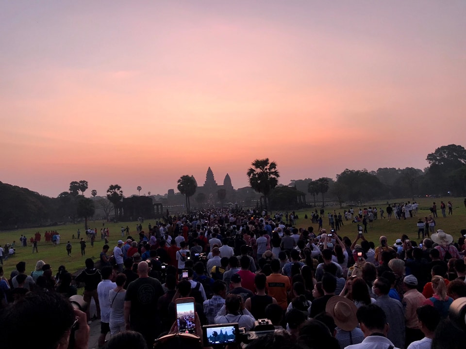 សៀមរាប – នៅព្រឹកព្រលឹមថ្ងៃទី២១ ខែមីនា នេះ អ្នកទេសចររាប់រយនាក់បាននាំគ្នាធ្វើដំណើរទៅប្រាសាទអង្គរ ដើម្បីទស្សនាព្រះអាទិត្យរះចំកំពូលកណ្តាលប្រាសាទ ដែលត្រូវបានចាត់ទុកថា ជាព្រឹត្តិការណ៍ដ៏អស្ចារ្យនៅប្រាសាទអង្គរវត្ត ។