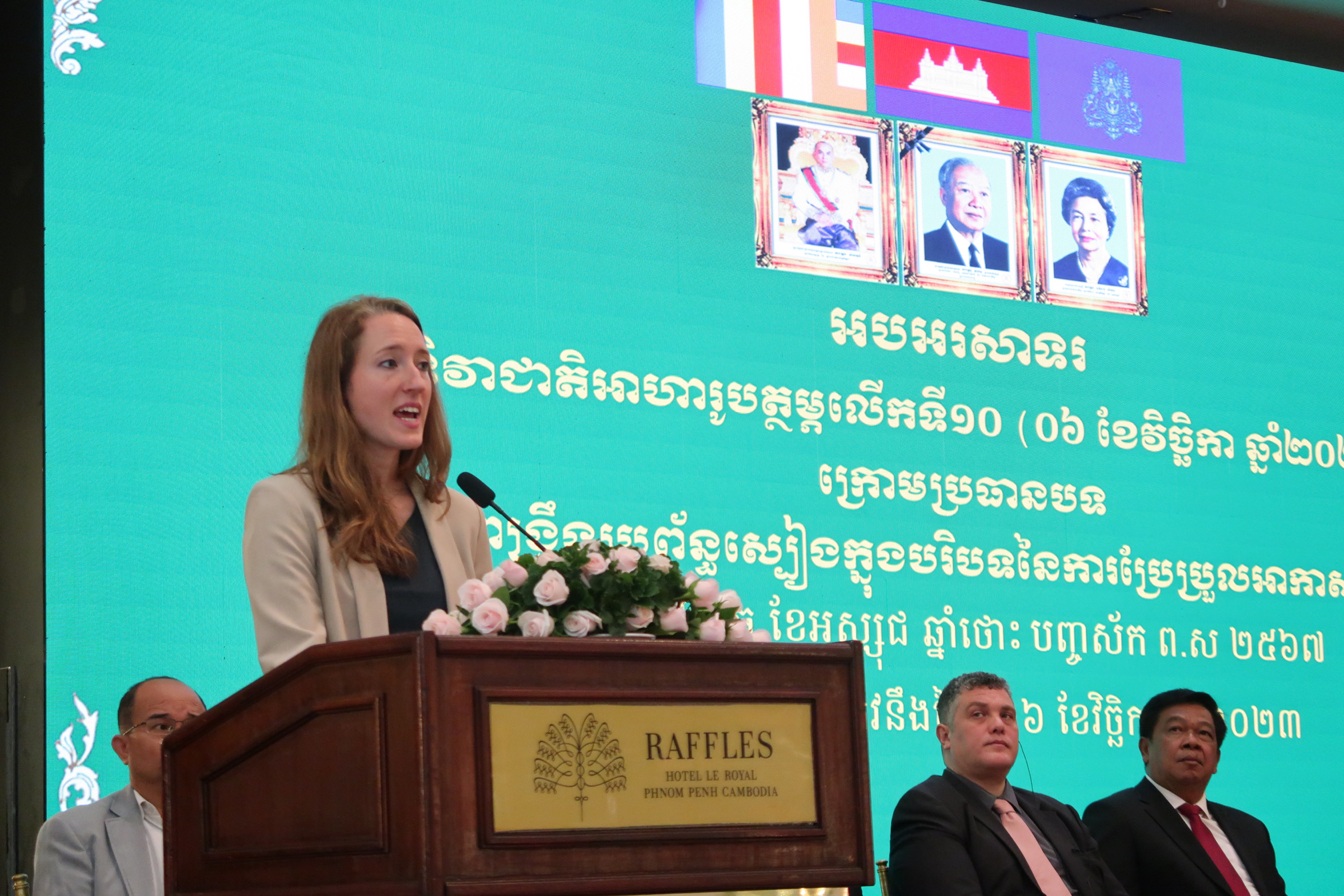 លោកស្រី Claire Conan នាយិកាកម្មវិធីស្បៀងអាហារពិភពលោក និងជាតំណាងអង្គការសហប្រជាជាតិនៃចលនាបង្កើនអាហារូបត្ថម្ភនៅកម្ពុជា មានប្រសាសន៍ថា ការប្រែប្រួលអាកាសធាតុ គឺជាការព្រួយបារម្ភជាសកល ។ ការប្រែប្រួលអាកាសធាតុនាំឱ្យមានការកាប់បំផ្លាញព្រៃឈើ ការបាត់បង់ជីវៈចម្រុះ ការបំពុល ការកើតឡើងសីតុណ្ហភាព ការប្រែប្រួលរបបទឹកភ្លៀង និងគ្រោះមហន្តរាយផ្សេងៗ ដែលបង្កឡើងដោយសារអាកាសធាតុញឹកញាប់ ដែលជះឥទ្ធិពលដល់ផលិតកម្មស្បៀងអាហារជាសកល ។