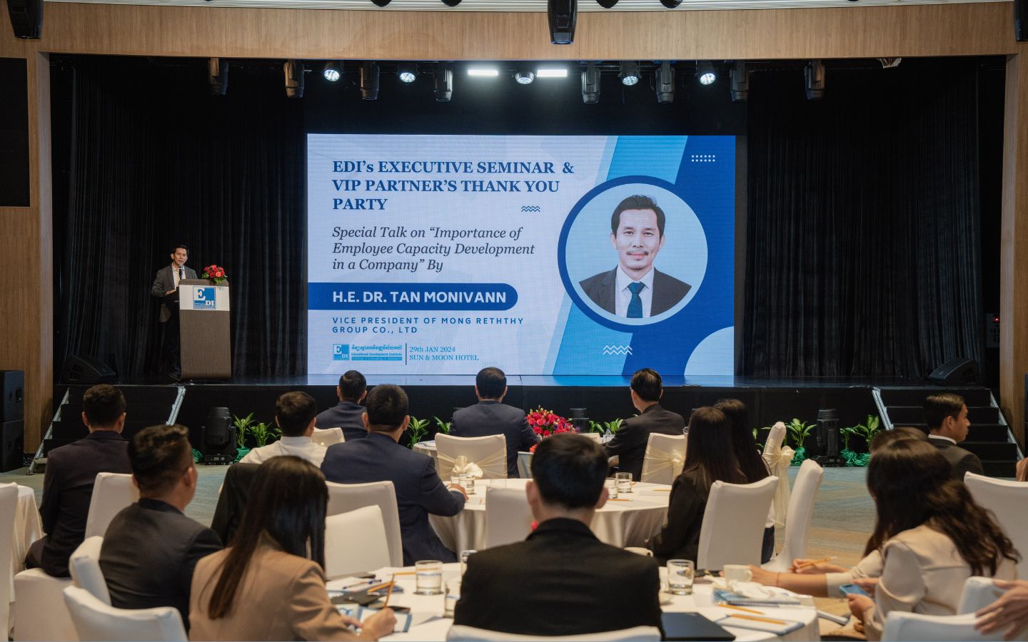 គួរជំរាបថា កាលពីថ្ងៃទី២៩ ខែមករា ឆ្នាំ២០២៤ វិទ្យាស្ថានអភិវឌ្ឍវិស័យអប់រំ បានរៀបចំពិធីជប់លៀងថ្លែងអំណរគុណជូនដល់ដៃគូអាជីវកម្មប្រមាណ ១៦០ ក្រុមហ៊ុន/ស្ថាប័ន ក្នុងគោលបំណងថ្លែងអំណរគុណ និងប្រកាសជូននូវវគ្គសិក្សាថ្មីៗ និងជាវគ្គសិក្សាដែលចាំបាច់សម្រាប់ការអភិវឌ្ឍន៍ដល់ស្ថាប័នដៃគូ ជាពិសេសដល់ម្ចាស់អាជីវកម្ម ក្រុមហ៊ុនដៃគូដែលតែងតែគាំទ្រសេវាបណ្តុះបណ្តាលរបស់វិទ្យាស្ថាន។