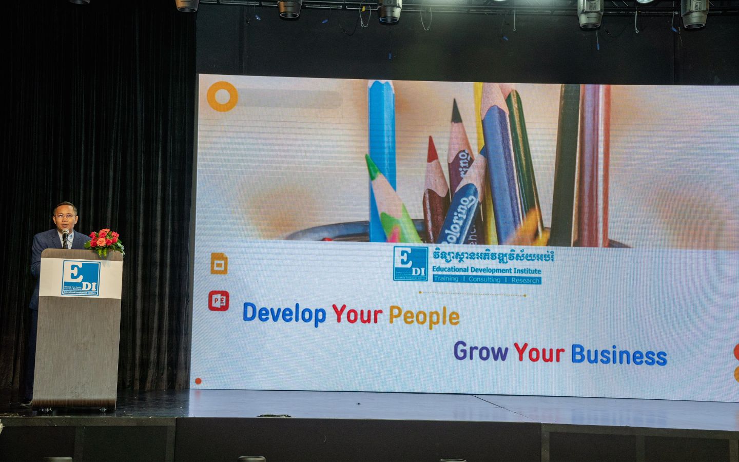 លោកឧកញ៉ា ប៉ិច បូឡែន អគ្គនាយកបណ្តាញគ្រឹះស្ថានអប់រំ និងបណ្តុះបណ្តាល វេសឡាញ អេឌ្យូខេសិន គ្រុប និងជាប្រធានវិទ្យាស្ថានអភិវឌ្ឍវិស័យអប់រំ មានប្រសាសន៍ថា ជាបេសកកម្ម EDI គឺផ្តោតទៅលើការកសាងសមត្ថភាពបុគ្គលិក ថ្នាក់ដឹកនាំរបស់ក្រុមហ៊ុន ហើយមិនតែប៉ុណ្ណោះក៏បានចូលរួមកសាងសមត្ថភាពដល់មន្រ្តីរាជការនៅតាមក្រសួងស្ថាប័នមួយចំនួនផងដែរ។