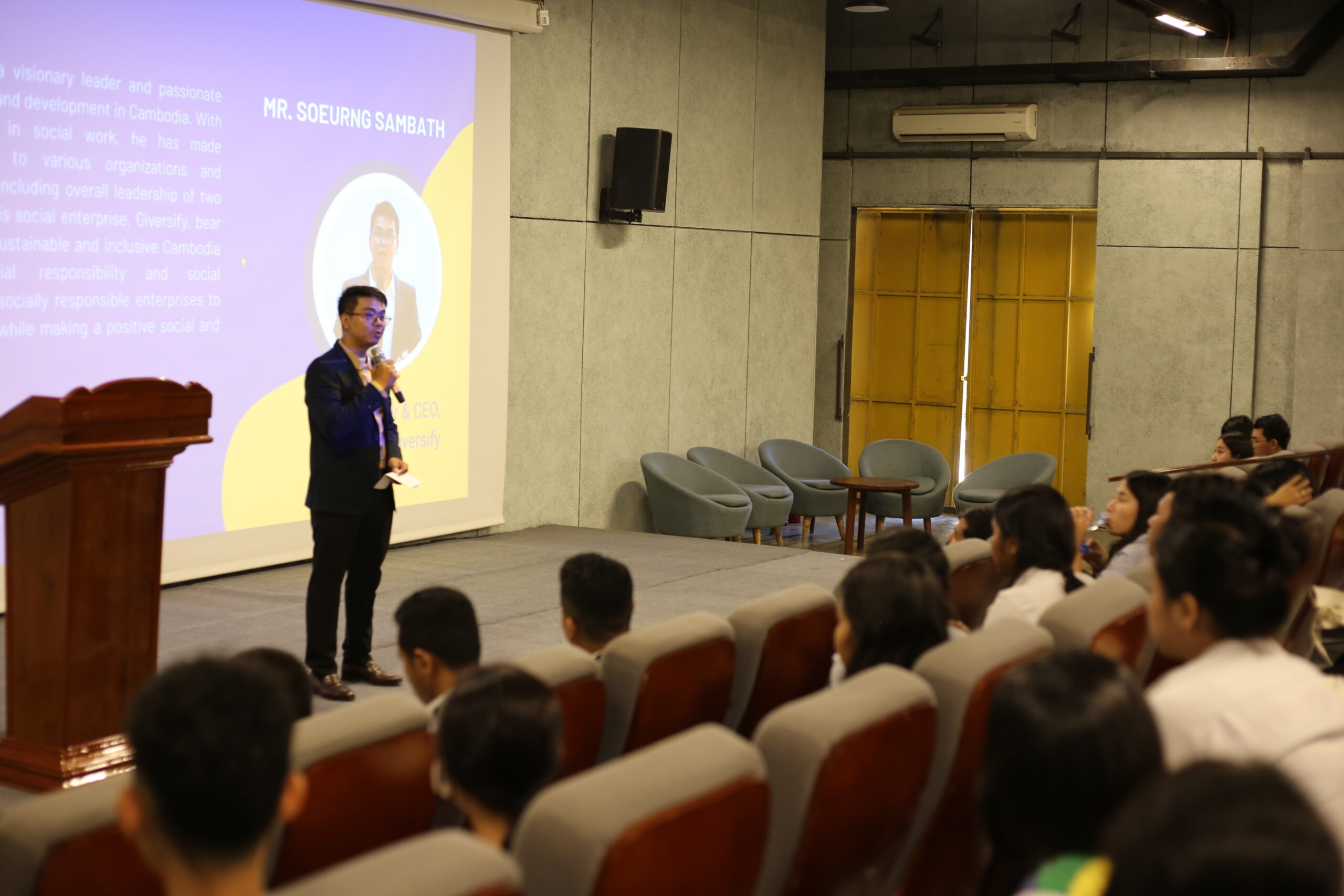 នៅក្នុងវេទិកាសន្ទនាយុវជនកម្ពុជា “តម្រង់ទិសខ្លួនឯងឆ្ពោះទៅរកភាពជោគជ័យនៅថ្នាក់ឧត្តមសិក្សា និងមាគ៌ាអាជីពដំបូង” រៀបចំឡើងដោយ Giversify កាលពីថ្ងៃទី០៨ ខែធ្នូ ឆ្នាំ២០២៣កន្លងទៅ លោក សឿង សម្បត្តិ ស្ថាបនិក Giversify មានប្រសាសន៍ថា លោកចង់ឃើញយុវជនក្លាយជាអ្នកដឹកនាំដែលគិតគូរពីទំនួលខុសត្រូវសង្គមរួមគ្នា (CSR) នៅថ្ងៃអនាគត។