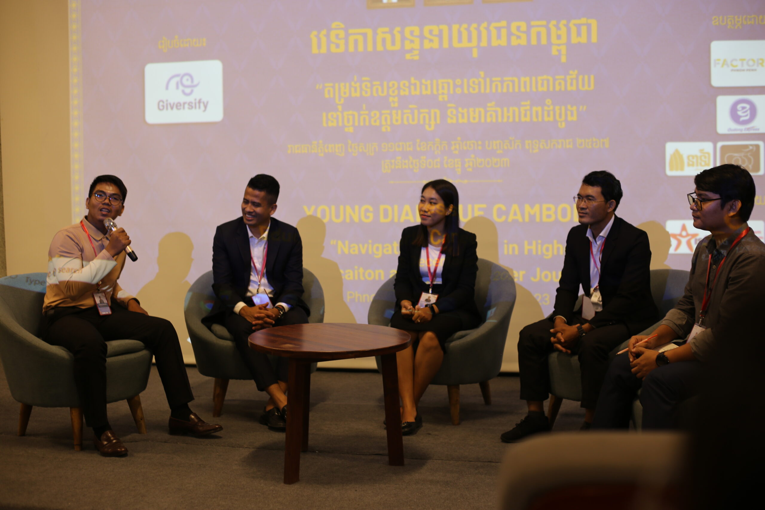 ស្ថាបនិក Giversify រូបនេះបន្ថែមថា វេទិកាសន្ទនាយុវជនកម្ពុជា ត្រូវបានរៀបចំឡើងក្នុងគោលបំណងចំនួន៣ គឺ ១. បង្កើតឱកាសដល់យុវជនដើម្បីសិក្សាពីគ្នាទៅវិញទៅមកពាក់ព័ន្ធនឹងការតម្រង់ទិសខ្លួនឯងឆ្ពោះទៅរកភាពជោគជ័យនៅថ្នាក់ឧត្តមសិក្សា និងមាគ៌ាអាជីពដំបូង ហើយត្រៀមខ្លួនឱ្យបានរួចរាល់ដើម្បីទទួលបានជោគជ័យ, ២. ជំរុញយុវជនគិតគូរពីអនាគតដែលពួកគេចង់សម្រេចបាន និង៣. ផ្តល់នូវភាពជាដៃគូរជាមូលដ្ឋានសម្រាប់ក្រុមហ៊ុនឯកជន សហគ្រាសសង្គម និងភ្នាក់ងារផ្តល់សេវាកម្មសង្គម ដើម្បីចូលរួមក្នុងការលើកម្ពស់វិស័យអប់រំ និងការងាររបស់យុវជនកម្ពុជា។