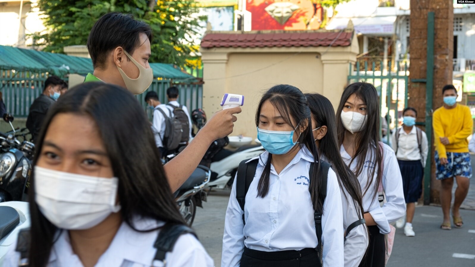 ទី៣. ករណីរកឃើញបេក្ខជនមានកម្តៅលើសពី ៣៧,៥អង្សាសេ ឬមានរោគសញ្ញាដូចជាក្អក ហៀរសំបោរ ឈឺបំពង់ក ពិបាកដកដង្ហើម ត្រូវណែនាំឱ្យធ្វើតេស្តរហ័សរកអង់ទីហ្សេនមេរោគកូវីដ-១៩ នៅទីតាំងសុខាភិបាលដែលកំណត់ដោយអាជ្ញាធររាជធានី ខេត្ត និងត្រូវសុំលិខិតបញ្ជាក់បេក្ខជនអវិជ្ជមានកូវីដ១៩ មកបង្ហាញនៅមណ្ឌលប្រឡងវិញ ដើម្បីទទួលស្ទីកឃ័រ-កម្តៅធម្មតា និងការអនុញ្ញាតឱ្យចូលប្រឡង។