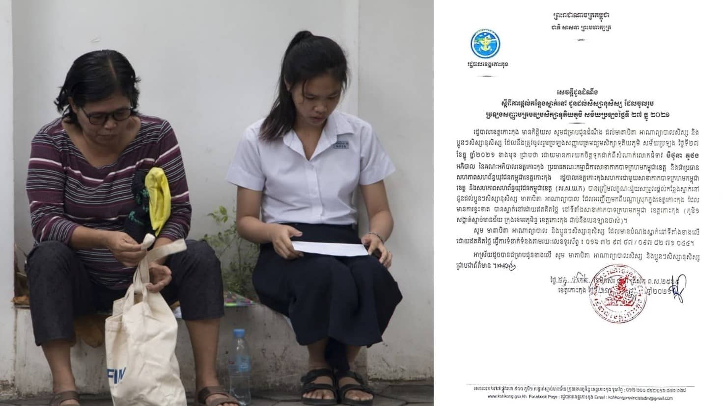 ភ្នំពេញ- រដ្ឋបាលខេត្តកោះកុង សហការជាមួយសាខាកាកបាទក្រហមកម្ពុជាខេត្ត និងសហភាពសហព័ន្ធយុវជនកម្ពុជាខេត្ត បានត្រៀមលក្ខណៈរួចហើយក្នុងការជួយសម្រួលផ្តល់កន្លែងស្នាក់នជូនដល់សិស្សានុសិស្ស មាតាបិតា អាណាព្យាបាល មកពីបណ្តាស្រុកក្នុងខេត្តកោះកុង ដែលមកចូលរួមប្រឡងសញ្ញាបត្រមធ្យមសិក្សាទុតិយភូមិ សម័យប្រឡងថ្ងៃទី២៧ ខែធ្នូ ឆ្នាំ២០២១។