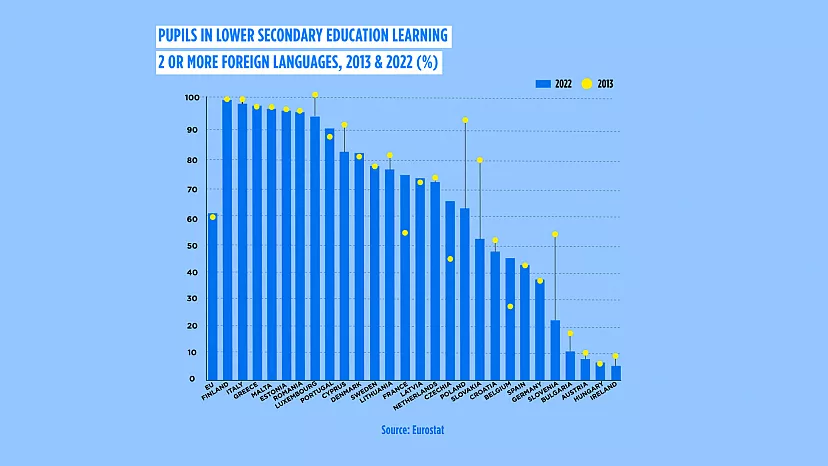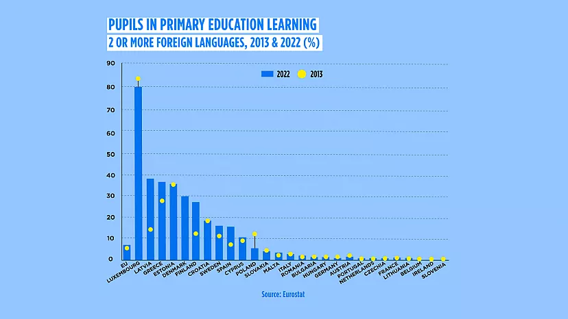 គិតត្រឹមឆ្នាំ២០២២ ការសិក្សាភាសាបរទេសពីរ ឬច្រើនជាងនេះ ក្នុងចំណោមជនជាតិអឺរ៉ុប កំពុងកើនឡើងទូទាំងសហភាពអឺរ៉ុប។ ដោយនៅចន្លោះឆ្នាំ២០១៣ និង២០២២ សិស្សបឋមសិក្សា ក្នុងសហភាពអឺរ៉ុប ដែលរៀនភាសាបរទេសយ៉ាងហោចណាស់ពីរ បានកើនឡើងពី ៤,៦ ទៅ ៦,៥ ភាគរយ។ ទន្ទឹមនឹងការកើនឡើង ប្រទេសក្នុងសហភាពអឺរ៉ុប ចំនួន ៩ មានតួលេខនៃអ្នករៀនភាសាធ្លាក់ចុះ ក្នុងនោះមានប្រទេសពីរ ដែលតួលេខធ្លាក់ចុះ គួរឱ្យកត់សម្គាល់ ដោយ ប៉ូឡូញ ធ្លាក់ចុះ ៦,៨ភាគរយ និងលុចសំបួរធ្លាក់ចុះ ៤,២ ភាគរយ។