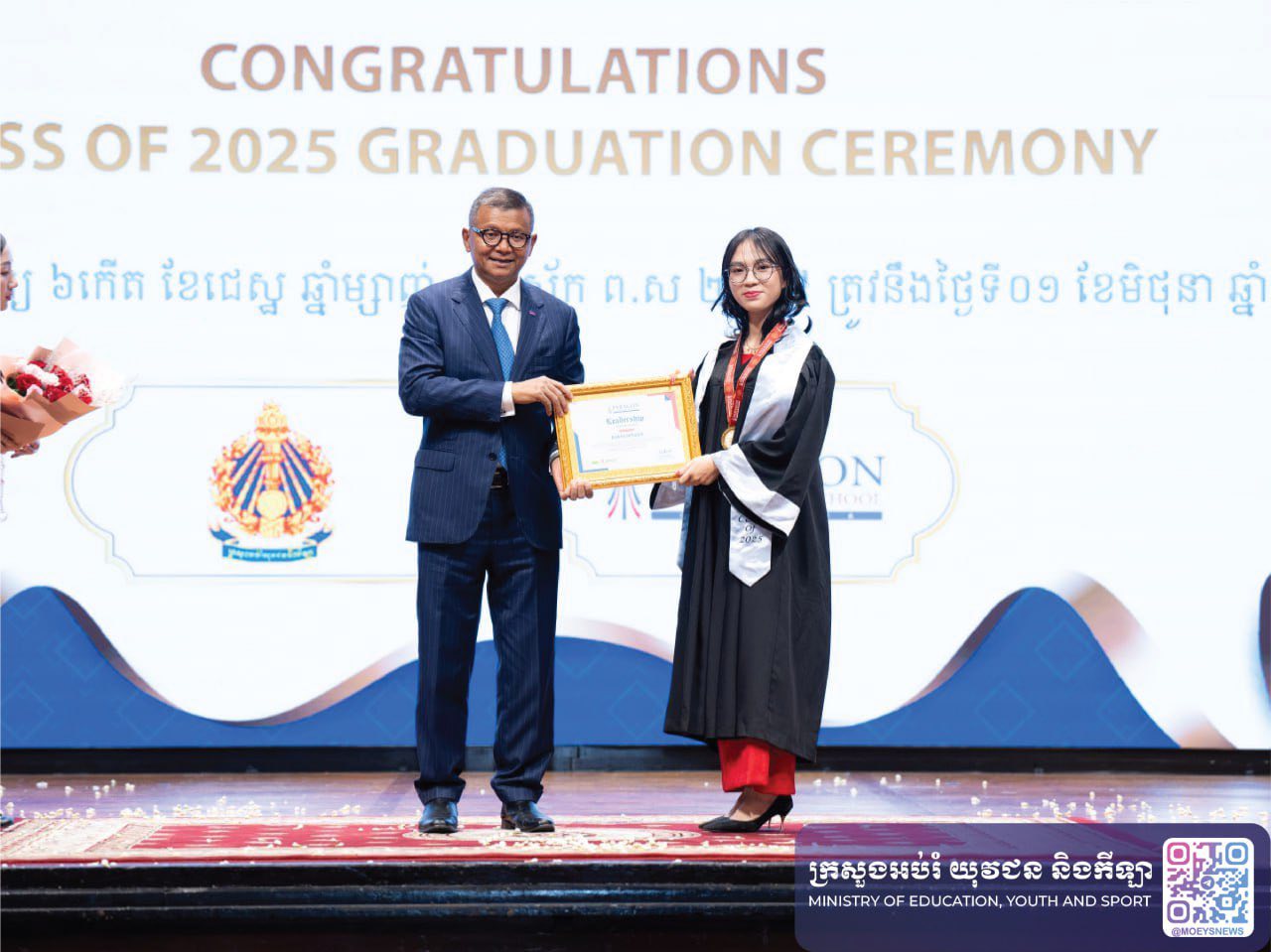 នៅចំពោះមុខសិស្សដែលបញ្ចប់ថ្នាក់មធ្យមសិក្សាទុតិយភូមិ ឯកឧត្តមបណ្ឌិតសភាចារ្យ ក៏បានលើកទឹកចិត្តពួកគេឱ្យបន្តខិតខំប្រឹងប្រែងរៀនសូត្រ ដោយថា ការបញ្ចប់ថ្នាក់មធ្យមសិក្សាទុតិយភូមិនេះ គឺគ្រាន់តែជាចំណុចចាប់ផ្តើមនៃវិថីសិក្សា និងជីវិតប៉ុណ្ណោះ ដូច្នេះក្មួយៗ ត្រូវចេះក្តាប់ឱកាសឱ្យជាប់ក្នុងការក្រេបជញ្ជក់យកចំណេះដឹង ជំនាញ និងរស់នៅប្រកបដោយវិន័យ សីលធម៌ និងចរិយាធម៌ល្អ ដើម្បីបណ្តុះសមត្ថភាពឱ្យក្លាយជាអ្នកដឹកនាំដ៏មានសក្តានុពល ប្រកបដោយព្រហ្មវិហារធម៌។