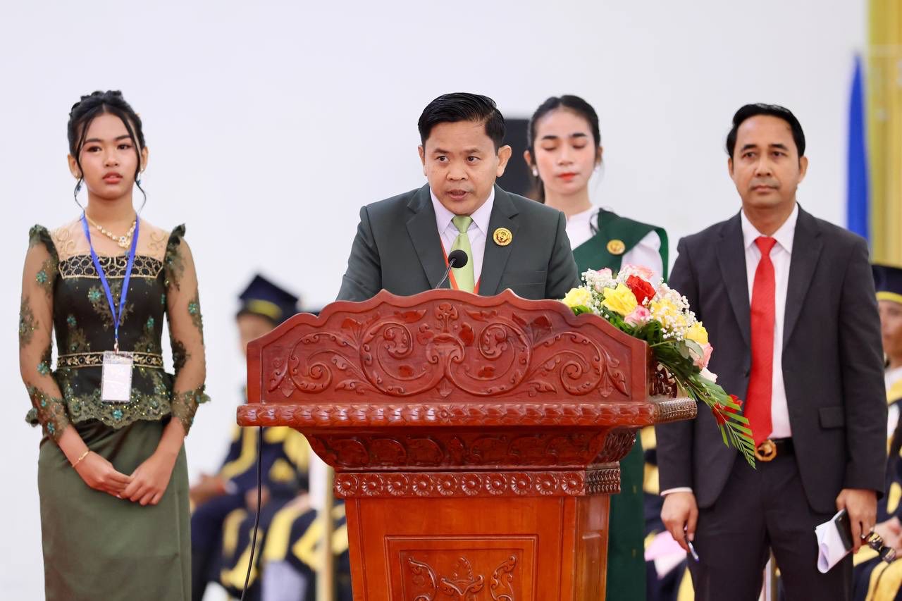 តាងនាមរាជរដ្ឋាភិបាលកម្ពុជា ក៏ដូចជាក្រសួងអប់រំ យុវជន និងកីឡា ឯកឧត្តមបណ្ឌិតសភាចារ្យ ហង់ជួន ណារ៉ុន បានអបអរសាទរនិស្សិតជ័យលាភីទាំងអស់ ដែលបានយកអស់កម្លាំងកាយចិត្តខិតខំប្រឹងប្រែងសិក្សារហូតទទួលបានជោគជ័យ។ ជាមួយគ្នាឯកឧត្តមក៏កោតសរសើរដល់ក្រុមប្រឹក្សាភិបាល គណៈនាយក បុគ្គលិក សាស្ត្រាចារ្យ ដៃគូសហប្រតិបត្តិទាំងអស់ ចំពោះការរួមចំណែកបណ្តុះបណ្តាលធនធានមនុស្សប្រកបដោយគុណភាព សមត្ថភាព មានចំណេះដឹង ចំណេះធ្វើ មានសីលធម៌ល្អ មនសិការវិជ្ជាជីវៈ សេចក្ដីថ្លៃថ្នូរ កិត្តិយស និងចេះរួមរស់ជាមួយគ្នាប្រកបដោយភាពសុខដុមរមនា ដែលជាមូលដ្ឋានគ្រឹះ នៃការអភិវឌ្ឍប្រទេសជាតិលើគ្រប់វិស័យ។