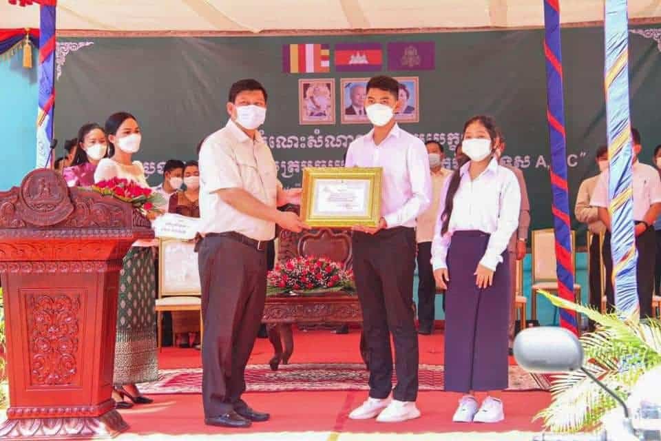 សូមជម្រាបថា ឯកឧត្តម សាយ សំអាល់ បានផ្តល់ការលើកទឹកចិត្តដល់សិស្សានុសិស្សប្រឡងសញ្ញាបត្រមធ្យមសិក្សាទុតិយភូមិឆ្នាំសិក្សា២០២០-២០២១ និទ្ទេស A ទាំង ២០នាក់ ដោយម្នាក់ៗទទួលបានម៉ូតូមួយគ្រឿង និងថវិកា ៥០០ដុល្លារ និទ្ទេស B ចំនួន ៦៧នាក់ ដោយម្នាក់ៗទទួលបានថវិកា ២០០ដុល្លា និងនិទ្ទេស C ចំនួន ១៧០នាក់ ម្នាក់ៗទទួលបានថវិកា ១០០ដុល្លា ៕