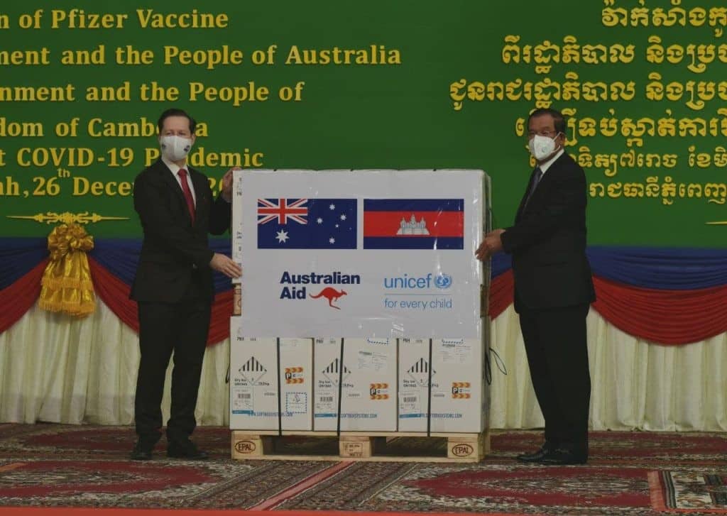 សូមបញ្ជាក់ថា នៅក្នុងឱកាសអញ្ជើញទទួលវ៉ាក់សាំង Pfizer ចំនួន ៧សែនដូសជាជំនួយរបស់រដ្ឋាភិបាលអូស្រ្តាលី នៅព្រលានយន្តហោះអន្តរជាតិភ្នំពេញ កាលពីរាត្រីថ្ងៃអាទិត្យ សម្តេចតេជោ ហ៊ុន សែន នាយករដ្ឋមន្រ្តីនៃកម្ពុជា បានសម្រេចឱ្យកីឡាករការ៉ាត់តេដូពីររូបទើបមកពីប្រកួតនៅប្រទេសកាហ្សាក់ស្តង់ អាចប្រឡងបាក់ឌុបនៅមណ្ឌលព្យាបាលកូវីដ-១៩ ៕