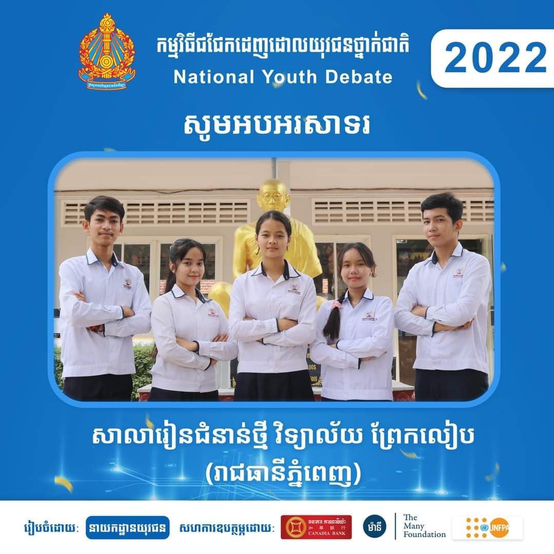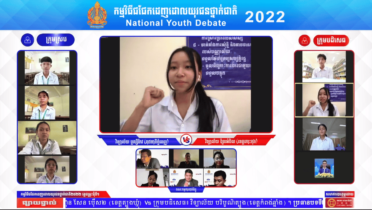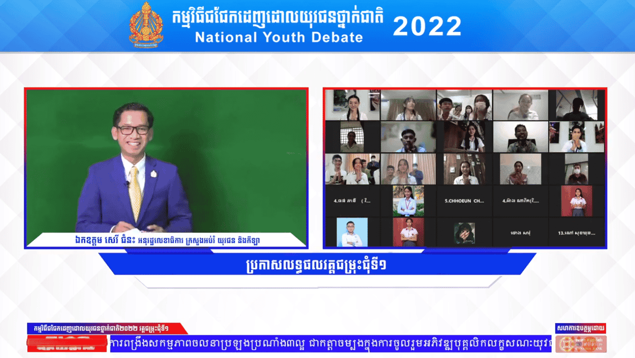 ភ្នំពេញ- វគ្គជម្រុះជុំទី១ នៃកម្មវិធីជជែកដេញដោលយុវជនថ្នាក់ជាតិឆ្នាំ២០២២ ធ្វើឡើងតាមរយៈប្រព័ន្ធអនឡាញ កាលពីថ្ងៃទី១៩-២០ និងថ្ងៃទី ២៦-២៧ ខែកុម្ភៈ កន្លងទៅ បានរកឃើញបេក្ខជនចំនួន ១៦ក្រុមនឹងបន្តចូលរួមប្រកួតនៅវគ្គជម្រុះជុំទី២ នៅថ្ងៃទី០៨-០៩ ខែមេសា ឆ្នាំ២០២២ ខាងមុខ ។