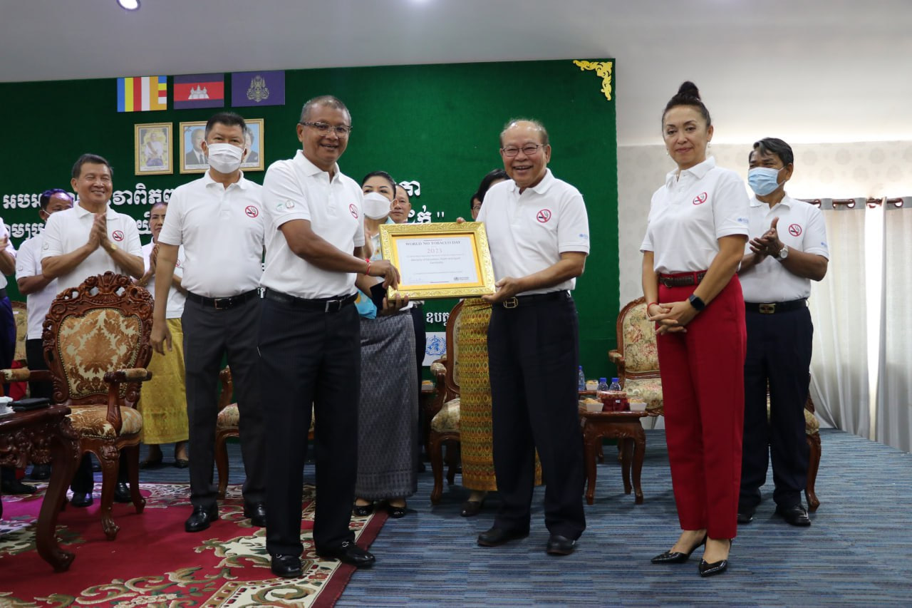 ភ្នំពេញ – ក្រសួងអប់រំ យុវជន និងកីឡា ទទួលពានទិវាពិភពលោកគ្មានថ្នាំជក់ ឆ្នាំ២០២៣ ពីអង្គការសុខភាពពិភពលោក ក្នុងទិវាពិភពលោកគ្មានថ្នាំជក់ ក្រោមប្រធានបទ “យើងត្រូវការអាហារ មិនមែនថ្នាំជក់” ដែលប្រព្រឹត្តទៅនៅទីស្ដីការក្រសួងសុខាភិបាល នាព្រឹកថ្ងៃទី២៩ ខែឧសភា ឆ្នាំ២០២៣។
