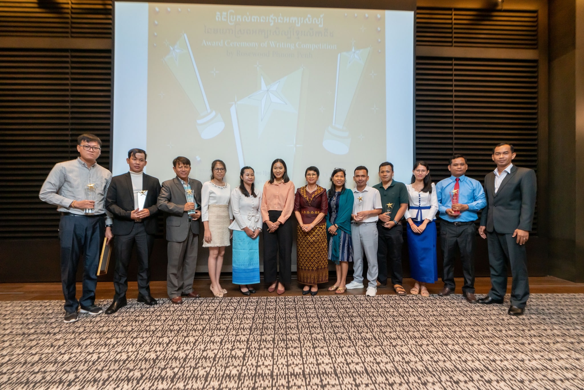 ចំណែកជ័យលាភីផ្នែកកំណាព្យ ជ័យលាភីលេខ១ បានទៅលើ លោក វណ្ណ សារ៉េត “សំឡេងទ្រកំដរប្រាសាទ”, ជ័យលាភីលេខ២ បានទៅលើ លោក ឡឹក សុធារ “ល្បើកសត្វខ្លា” និងលោក ហួត វាសនា “វេទិកាតុកាហ្វេ”, ជ័យលាភីកិត្តិយស បានទៅលើ កញ្ញា ហេង មៀនមៀន “ទំនួញអក្សរសាស្ត្រ” និងកញ្ញា លឹមផាន់ណា “ឆ័ត្រ”។ បើតាមការបញ្ជាក់របស់លោក ឃុត សុខឿន ស្នាដៃដែលបានចូលរួមក្នុងការប្រកួតមហោស្រពអក្សរសិល្ប៍ខ្មែរនៅឆ្នាំនេះ គឺមានចំនួនច្រើនជាងឆ្នាំមុនៗ ដែលនេះមានន័យថា មានការចាប់អារម្មណ៍ មានការចង់ចេះ ចង់ដឹងស្វែងយល់អំពីអក្សរសាស្រ្ត អក្សរសិល្ប៍ខ្មែរ ពីសំណាក់យុវជនកាន់តែច្រើនទៅៗ ។ ហើយលោករំពឹងថា ការរៀបចំការប្រកួតស្នាដៃអក្សរសិល្ប៍ខ្មែរនៅឆ្នាំបន្តបន្ទាប់ទៀត នឹងមានយុវជនកាន់តែច្រើនដាក់ស្នាដៃមកចូលរួមប្រកួត ជាមួយគ្នានេះ លោកក៏រំពឹងថា វិស័យឯកជនផ្សេងៗនឹងចូលរួមឧបត្ថម្ភគាំទ្រដល់ការប្រឡងប្រជែងនេះ ដែលវាជាការរួមចំណែកលើកកម្ពស់វិស័យតែងនិពន្ធ វិស័យការអាននៅកម្ពុជាផងដែរ៕