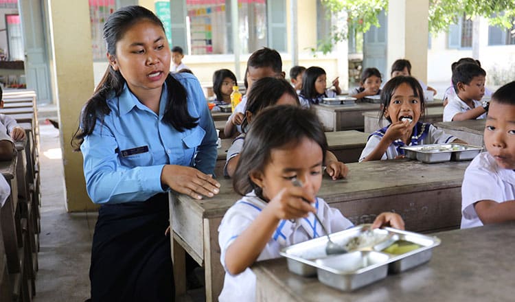 “កម្មវិធីផ្ដល់អាហារតាមសាលារៀន ប្រើប្រាស់កសិផលក្នុងសហគមន៍ ជាគោលដៅចម្បងមួយក្នុងការផ្ដល់ និងបង្កើនអាហារូបត្ថម្ភដល់កុមារឱ្យទទួលបានការលូតលាស់មាំមួនទាំងផ្នែក បញ្ញា ស្មារតី ផ្ដោតលើការរៀនសូត្របានល្អប្រសើរ”