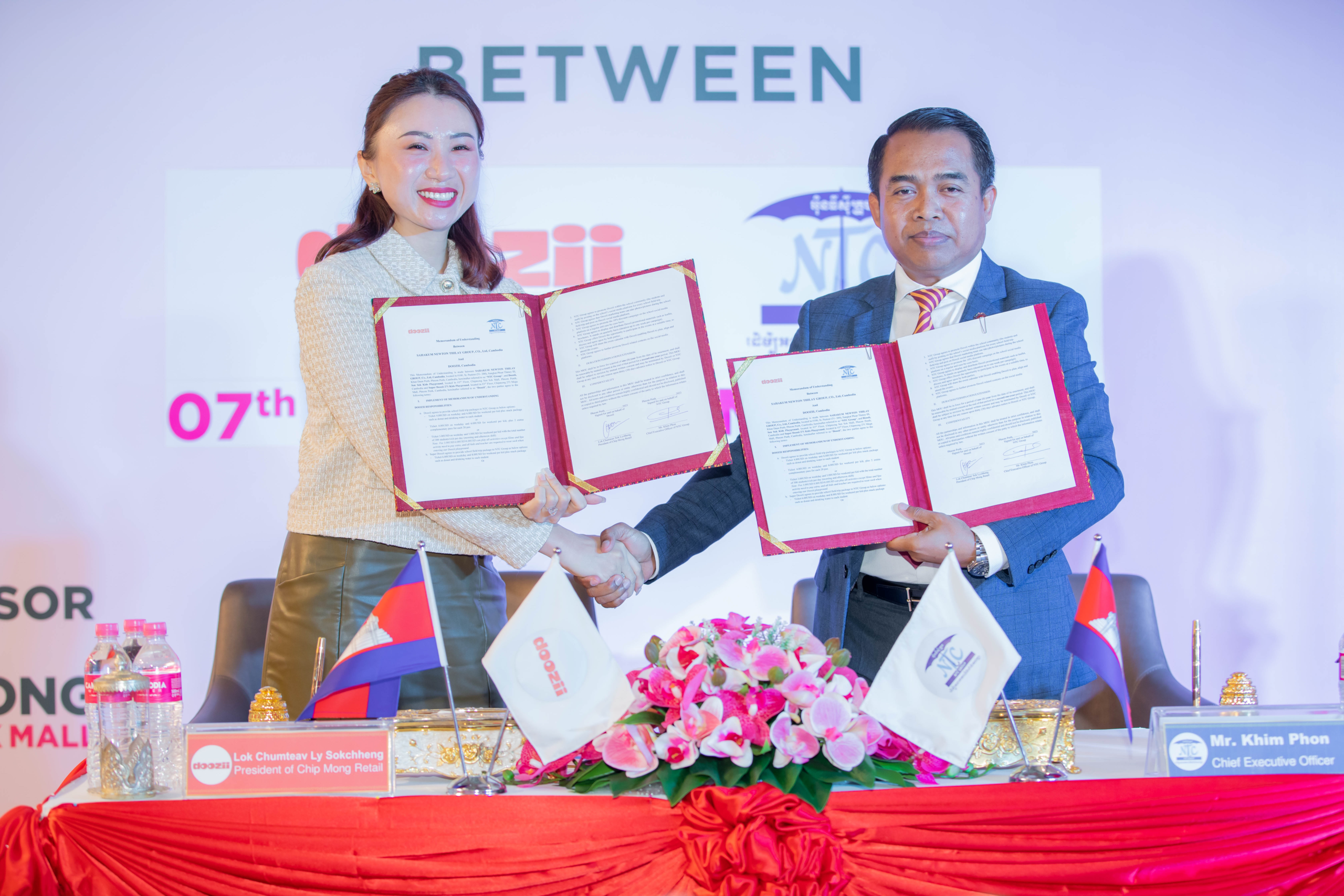ភ្នំពេញ ៖ កាលពីថ្ងៃទី០៧ ខែធ្នូ ឆ្នាំ២០២៣ ថ្នាក់ដឹកនាំនៃក្រុមហ៊ុន ជីប ម៉ុង រីថែល និង មជ្ឈមណ្ឌលកម្សាន្ត Doozii បានចុះអនុស្សរណៈនៃការយោគយល់គ្នារវាងក្រុមហ៊ុន NTC Group និង Westline Education Group ដែលសុទ្ធសឹងតែជាស្ថាប័នអប់រំដែលមានគុណភាព និងប្រព័ន្ធអប់រំល្អនៅប្រទេសកម្ពុជា។