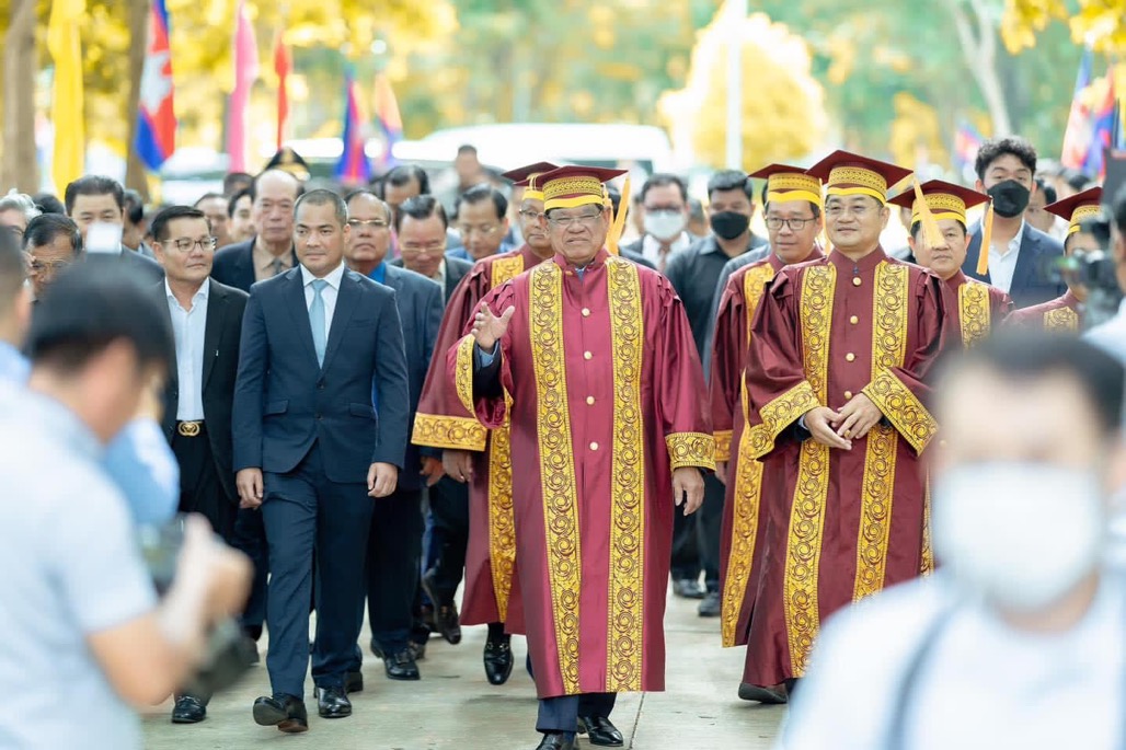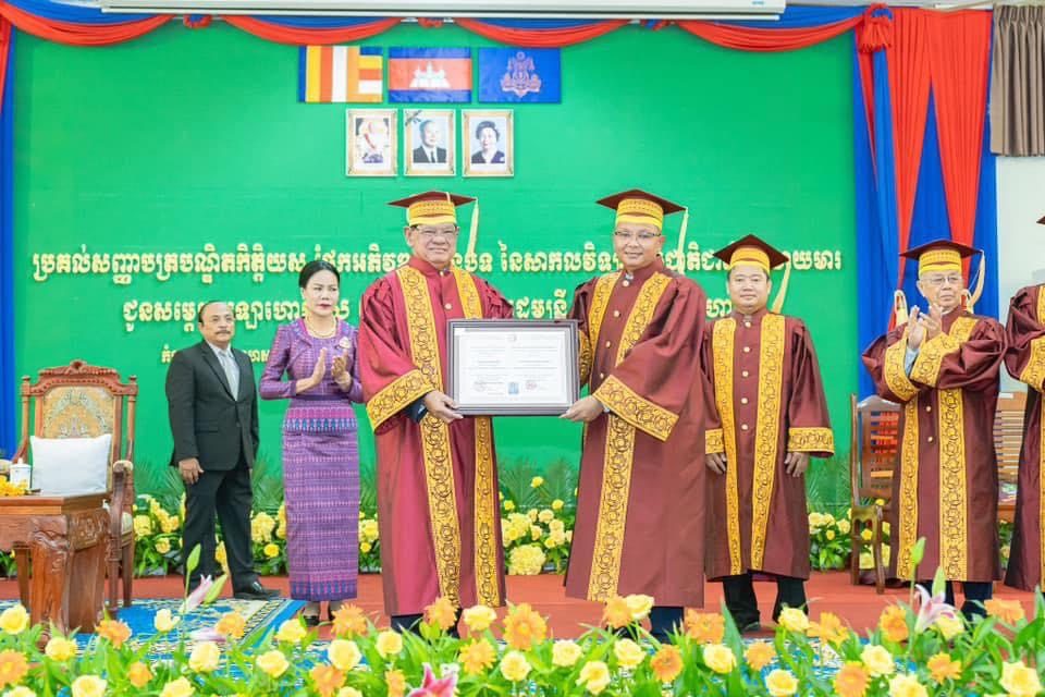 ព្រៃវែង – សម្ដេចក្រឡាហោម ស ខេង ឧបនាយករដ្ឋមន្ត្រី រដ្ឋមន្ត្រីក្រសួងមហាផ្ទៃ បានអញ្ជើញទទួលសញ្ញាបត្របណ្ឌិតកិត្តិយសផ្នែកអភិវឌ្ឍន៍ជនបទពីសាកលវិទ្យាល័យជាតិជាស៊ីមកំចាយមារ ប្រគល់ជូនដោយឯកឧត្តមបណ្ឌិតសភាចារ្យ ហង់ជួន ណារ៉ុន រដ្ឋមន្ដ្រីក្រសួងអប់រំ យុវជន និងកីឡា នៅព្រឹកថ្ងៃទី១៥ ខែមិថុនា។