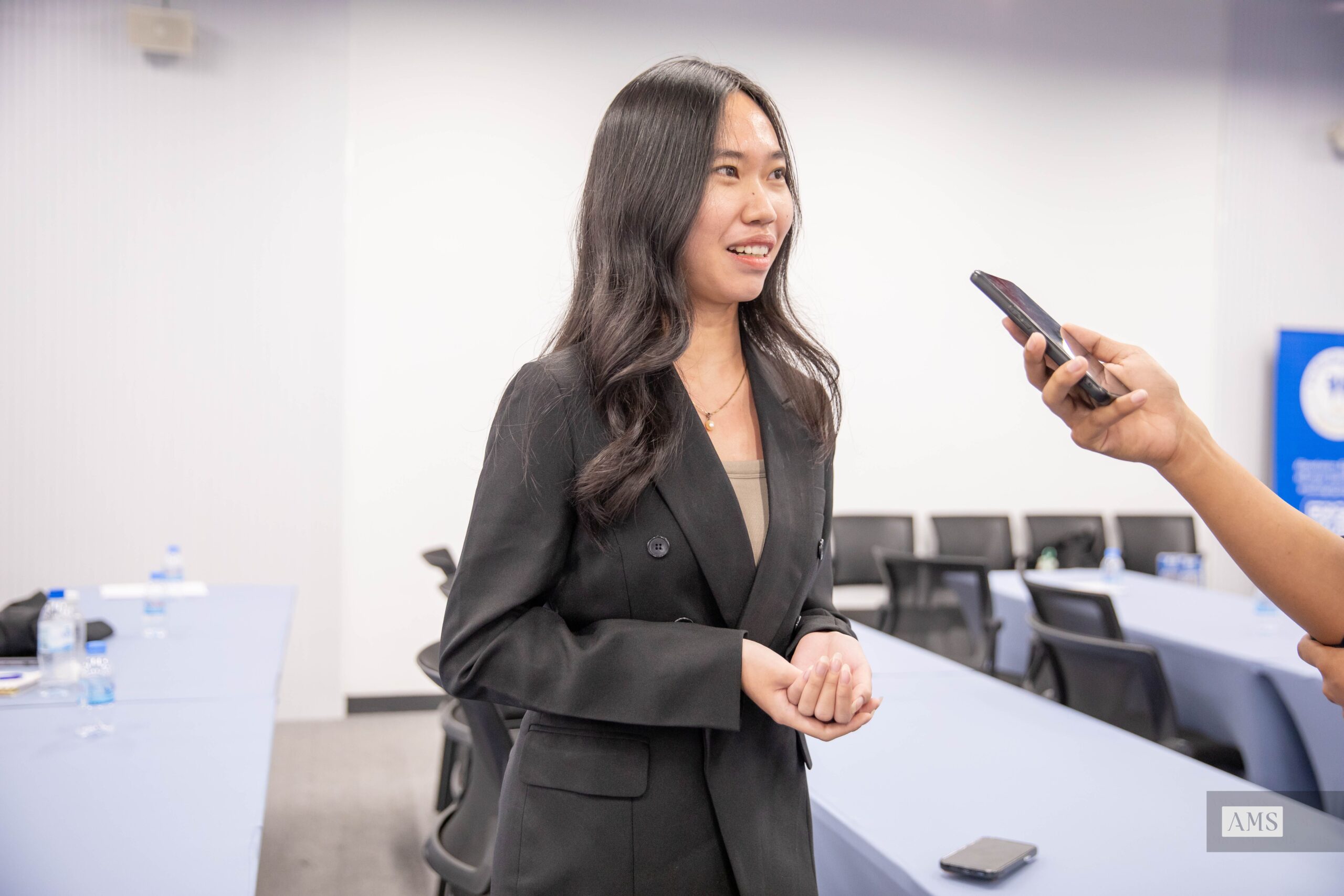 កញ្ញា អ៊ឹង សុគន្ធារី ជាសិក្ខាកាមម្នាក់ ដែលចូលរួមក្នុងសិក្ខាសាលានេះ និងជាអគ្គលេខាធិការរង នៃសមាគមន៍ផលិត គ្រឿងអេឡិចត្រូចនិច និងបច្ចេកវិទ្យាកម្ពុជា ។