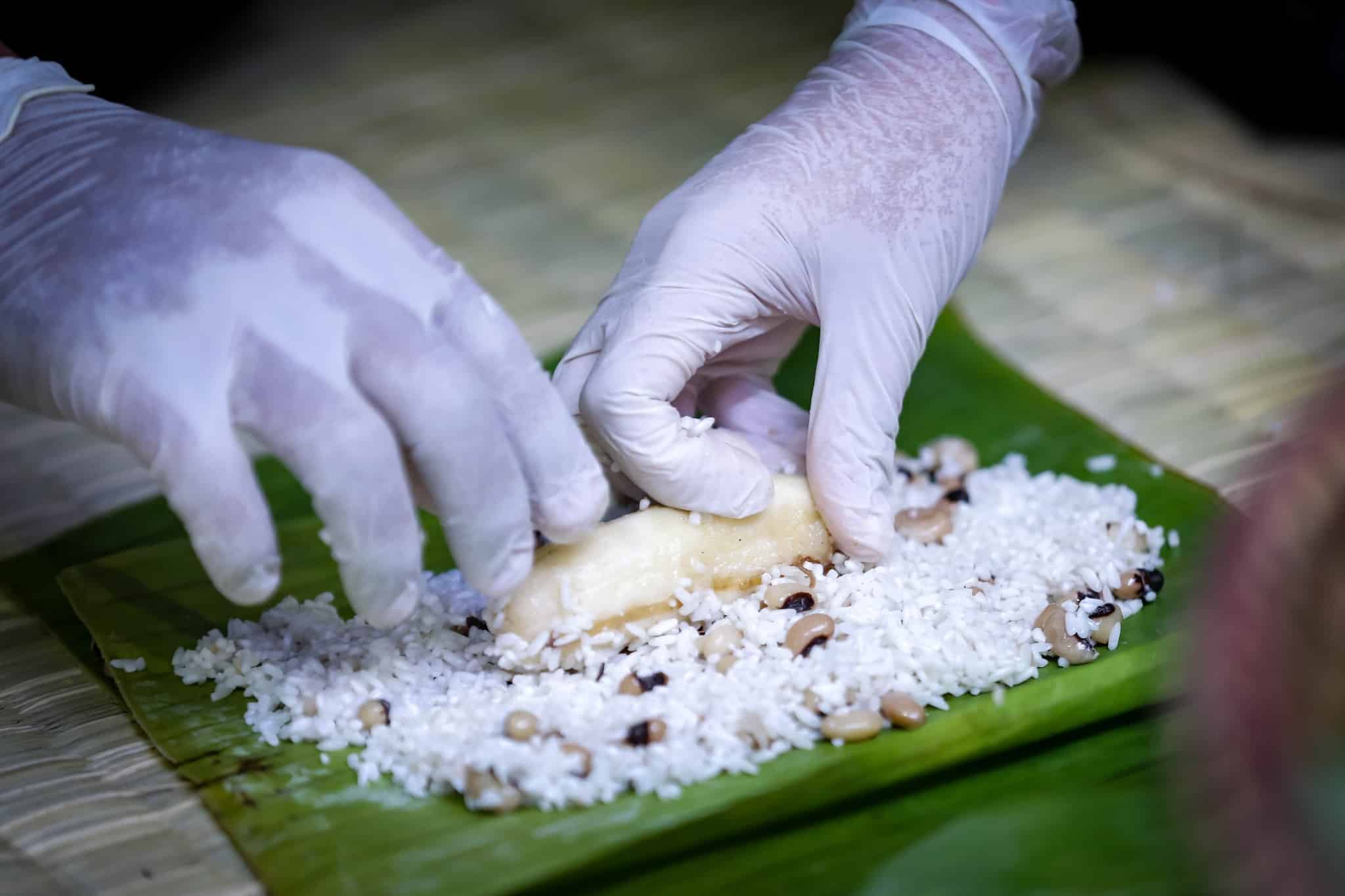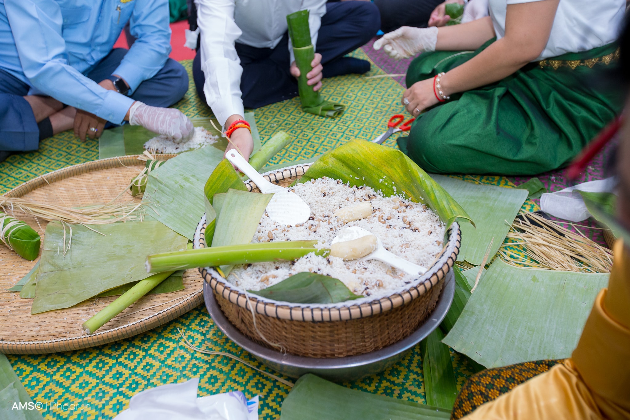 គ្រូបង្រៀនវ័យ ៣៦ឆ្នាំរូបនេះ បានចែករំលែកនូវចំណេះដឹងក្នុងការវេចនំអន្សមចេក ដែលលោកស្រីធ្លាប់ធ្វើកន្លងមក ក្នុងនោះ សម្រាប់គ្រឿងផ្សំ រួមមាន អង្ករដំណើម ចេកទុំ គ្រាប់សណ្តែក និងដូង។ អ្នកគ្រូបន្តថា គ្រាប់សណ្ដែកត្រូវលាងទឹកឱ្យស្អាត រួចយកទៅស្ងោរឱ្យរាងឆ្អិនបន្តិច។ បន្ទាប់មកលាយអំបិល ស្ករស ប៊ីចេង នៅក្នុងអង្ករដំណើបដែលបានសម្អាតរួច ដើម្បីបន្ថែមរស់ជាតិ ហើយភ្លក់ឱ្យដឹងរស់ជាតិល្មមទទួលយកបានតាមចំណងចំណូលចិត្ត។