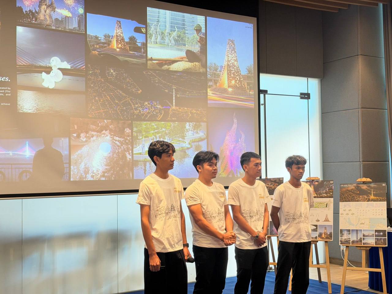 កញ្ញា អ៊ីឈិញ តំណាងក្រុមទី៧៤ មានសមាជិក៤នាក់ និងបានសិក្សាគម្រោងមានឈ្មោះថា «នរាចតុរាជ្យ» ដោយសិក្សាពីគម្រោង រូបសំណាកសួនច្បារកោះនរា សួនច្បារកោះពេជ្រ ស្ពានថ្មើរជើង ស្ពានអាកាសកោះពេជ្រ និង Zipline ផងដែរ។ អ៊ីឈិញ បន្តថា ការសិក្សាគម្រោងរបស់ខ្លួនសុទ្ធតែបានបង្កប់គំនិតច្នៃប្រឌិតពីតំបន់មួយទៅតំបន់មួយ។