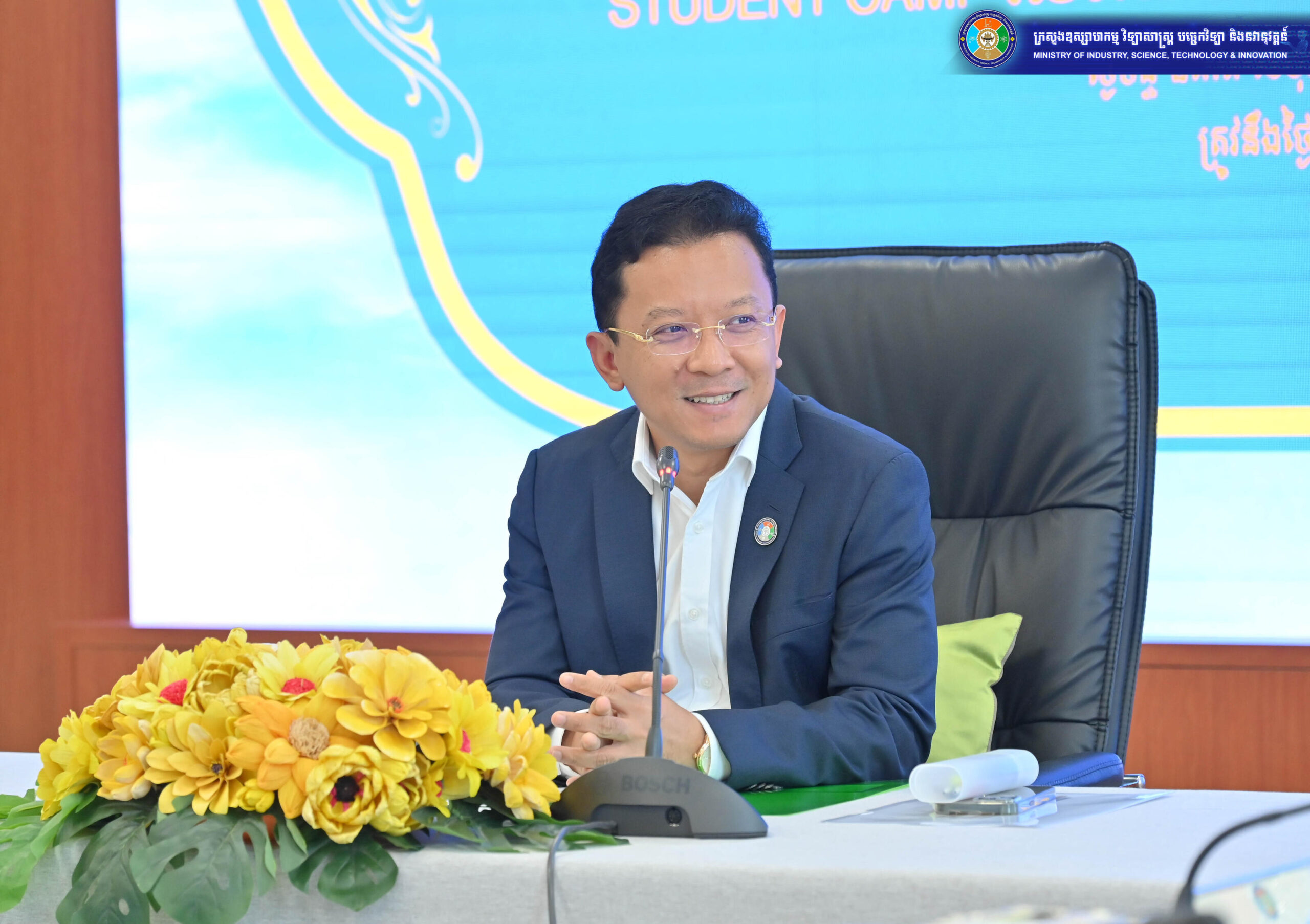 ក្នុងឱកាសជួបសំណេះសំណាលជាមួយយុវសិស្សឆ្នើមកម្ពុជា ដែលបានឈ្នះពានរង្វាន់វិទ្យាសាស្រ្តអាស៊ាន+៣ នៅប្រទេសកូរ៉េកាលពីពេលថ្មីៗនេះ ឯកឧត្តម ហែម វណ្ណឌី រដ្ឋមន្រ្តីក្រសួងឧស្សាហកម្ម វិទ្យាសាស្រ្ត បច្ចេកវិទ្យា និងនវានុវត្តន៍ បានអបអរសាទរ និងលើកទឹកចិត្តដល់យុវជនទាំងអស់ខិតខំធ្វើជាបុគ្គលគំរូ និងជាអ្នកបង្កើតថ្មី (នវានុវត្តន៍ករ) នាពេលអនាគត ដើម្បីអភិវឌ្ឍបច្ចេកវិទ្យា និងដំណោះស្រាយថ្មីៗ ដែលអាចប្រើប្រាស់បាននៅទូទាំងពិភពលោក។