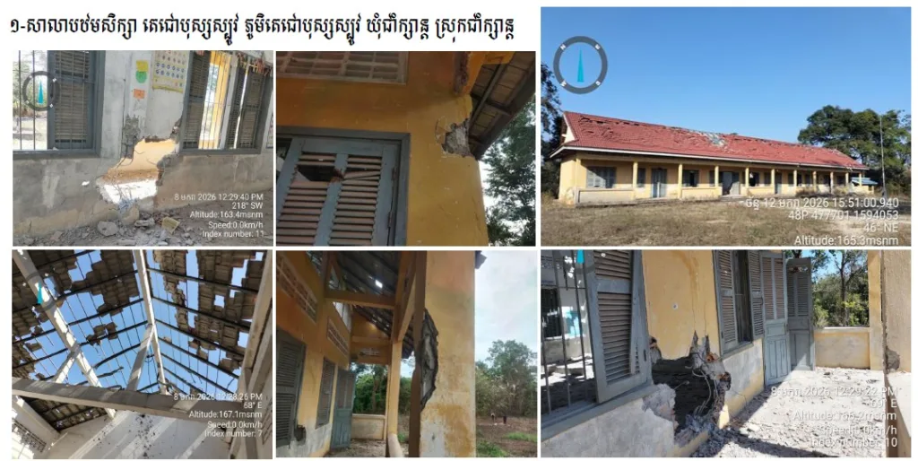 សាលាបឋមសិក្សាតេជោបុស្សស្បូវ រងការខូចខាតដោយសារគ្រប់ផ្លោងរបស់យោធាថៃ