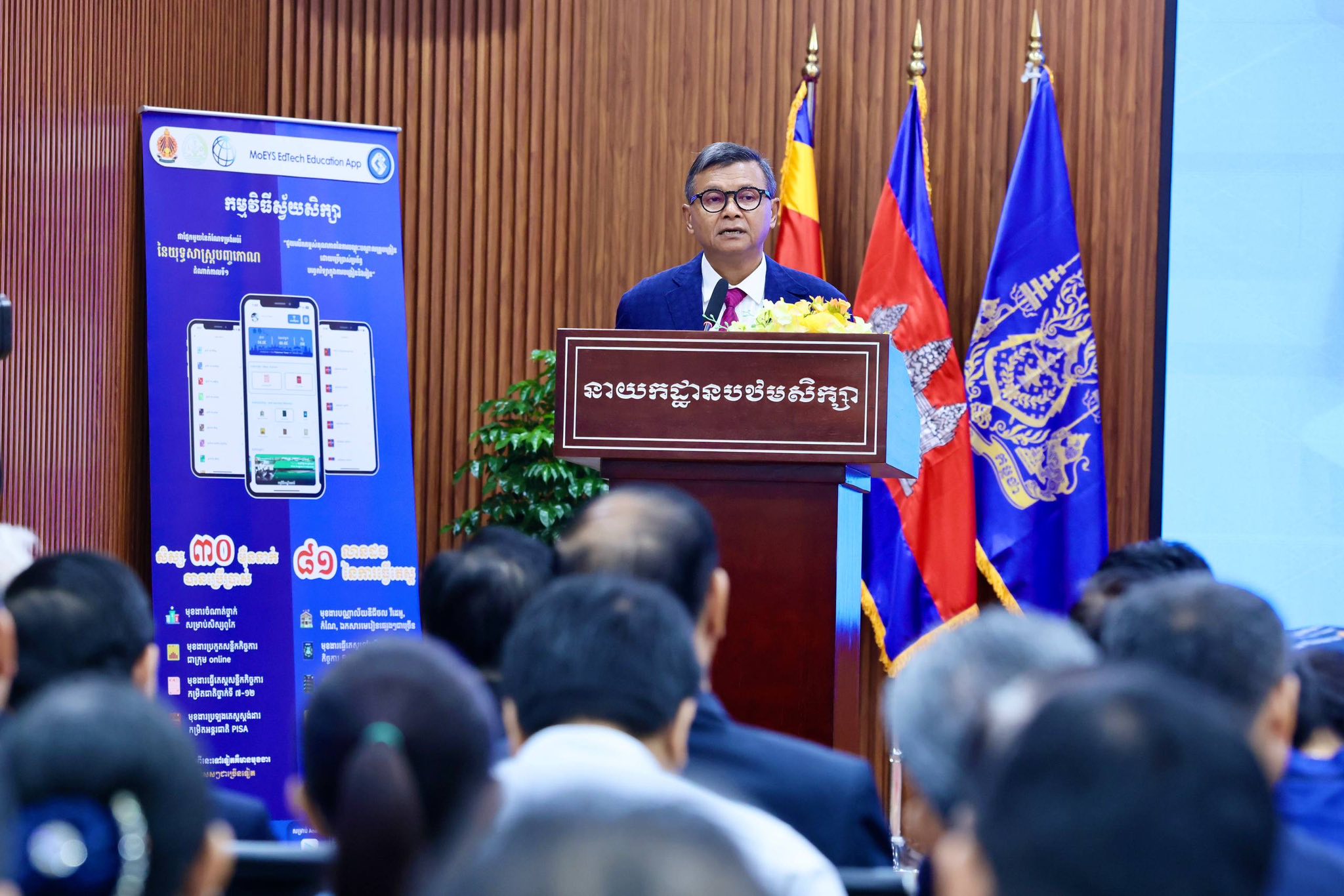 កាលពីចុងសប្តាហ៍នេះ ក្រសួងអប់រំបានសម្ពោធដាក់ឱ្យប្រើប្រាស់ជាផ្លូវការនូវកម្មវិធីទូរស័ព្ទចំនួនពីរ គឺកម្មវិធី MoEYS EdTech App និងកម្មវិធីបញ្ញាសិប្បនិម្មិតនៃកម្មវិធីថ្នាលបឋមសិក្សាសម្រាប់គ្រូបង្រៀន ដើម្បីជាប្រយោជន៍ដល់លោកគ្រូ អ្នកគ្រូ និងសិស្សានុសិស្សទាំងនៅកម្រិតបឋមសិក្សា និងមធ្យមសិក្សា ក្នុងការចាប់យកបច្ចេកវិទ្យាសម្រាប់បម្រើដល់ការរៀន និងការបង្រៀន ក្នុងបរិបទថ្មី ជាពិសេសការធ្វើសមាហរណកម្មបច្ចេកវិទ្យាអប់រំ និងបញ្ញាសិប្បនិម្មិតទៅក្នុងប្រព័ន្ធអប់រំ។