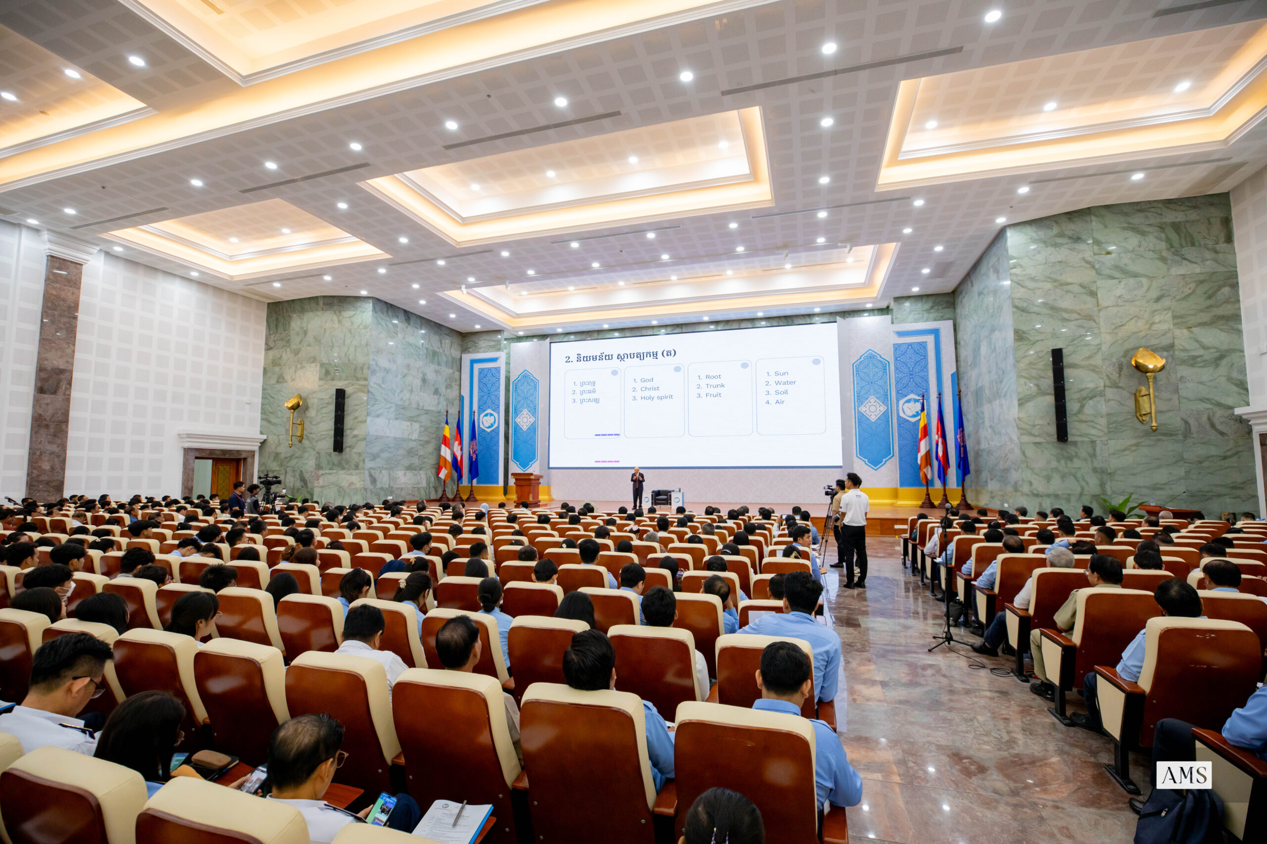 ក្នុងពិធីបើកសិក្ខាសាលាស្ដីពីការបណ្តុះបណ្តាលផ្នត់គំនិតស្ថាបត្យកម្ម គំនិតផ្តួចផ្តើមសាលារៀនកម្ពុជា នៅទីស្ដីការក្រសួងរៀបចំដែនដី នគរូបនីយកម្ម និងសំណង់ នាព្រឹកថ្ងៃទី១៣ ខែវិច្ឆិកា ឆ្នាំ២០២៥ ឯកឧត្តម ហង្ស សុតសំភារ រដ្ឋលេខាធិការ ក្រសួងរៀបចំដែនដី នគរូបនីយកម្ម និងសំណង់ (ដ.ន.ស) បានលើកឡើងពីទស្សនទាន៣សំខាន់ៗ ដើម្បីលើកកម្ពស់ស្ថាបត្យកម្មកម្ពុជា។