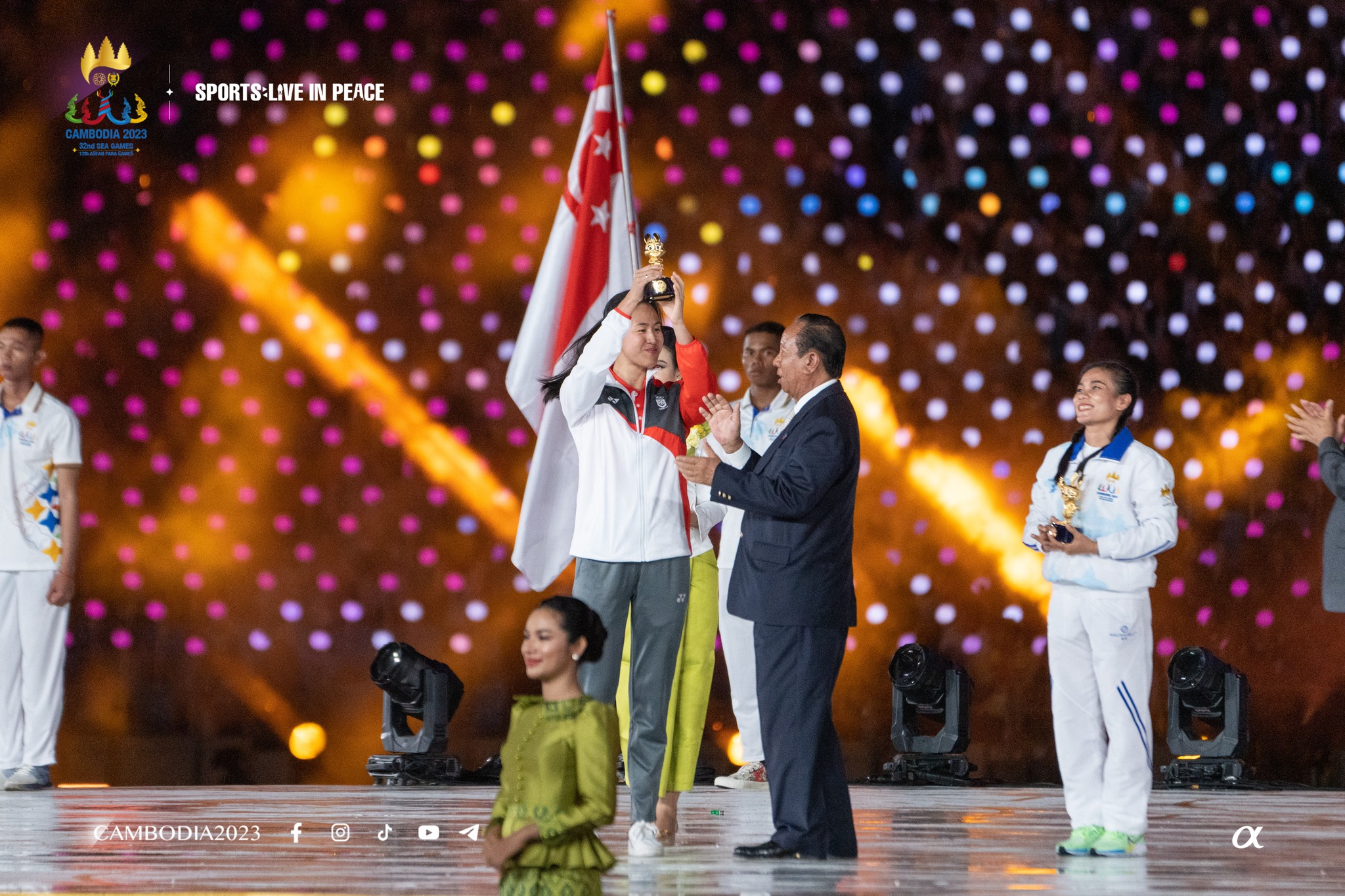 កីឡាការិនីវ៉ូវីណាមកម្ពុជា ប៉ាល់ ឆរស្មី ដែលបានឈ្នះមេដាយមាស ៤គ្រឿង, មេដាយប្រាក់ ១គ្រឿង, និងសំរឹទ្ធ ១គ្រឿង ។ ចំណែកកីឡាការិនីហែលទឹកសិង្ហបុរី Ting Wn Quah ដែលបានឈ្នះមេដាយមាស ៦គ្រឿង និងប្រាក់ ២គ្រឿង ។ សម្តេចពិជ័យសេនា ទៀ បាញ់ ឧបនាយករដ្ឋមន្ត្រី រដ្ឋមន្ត្រីក្រសួងការពារជាតិ និងជាប្រធានគណៈកម្មាធិការជាតិរៀបចំការប្រកួតកីឡាអាស៊ីអាគ្នេយ៍លើកទី៣២ ឆ្នាំ២០២៣ បានប្រគល់ពានជូនដល់កីឡាការិនីទាំងពីររូប ។
