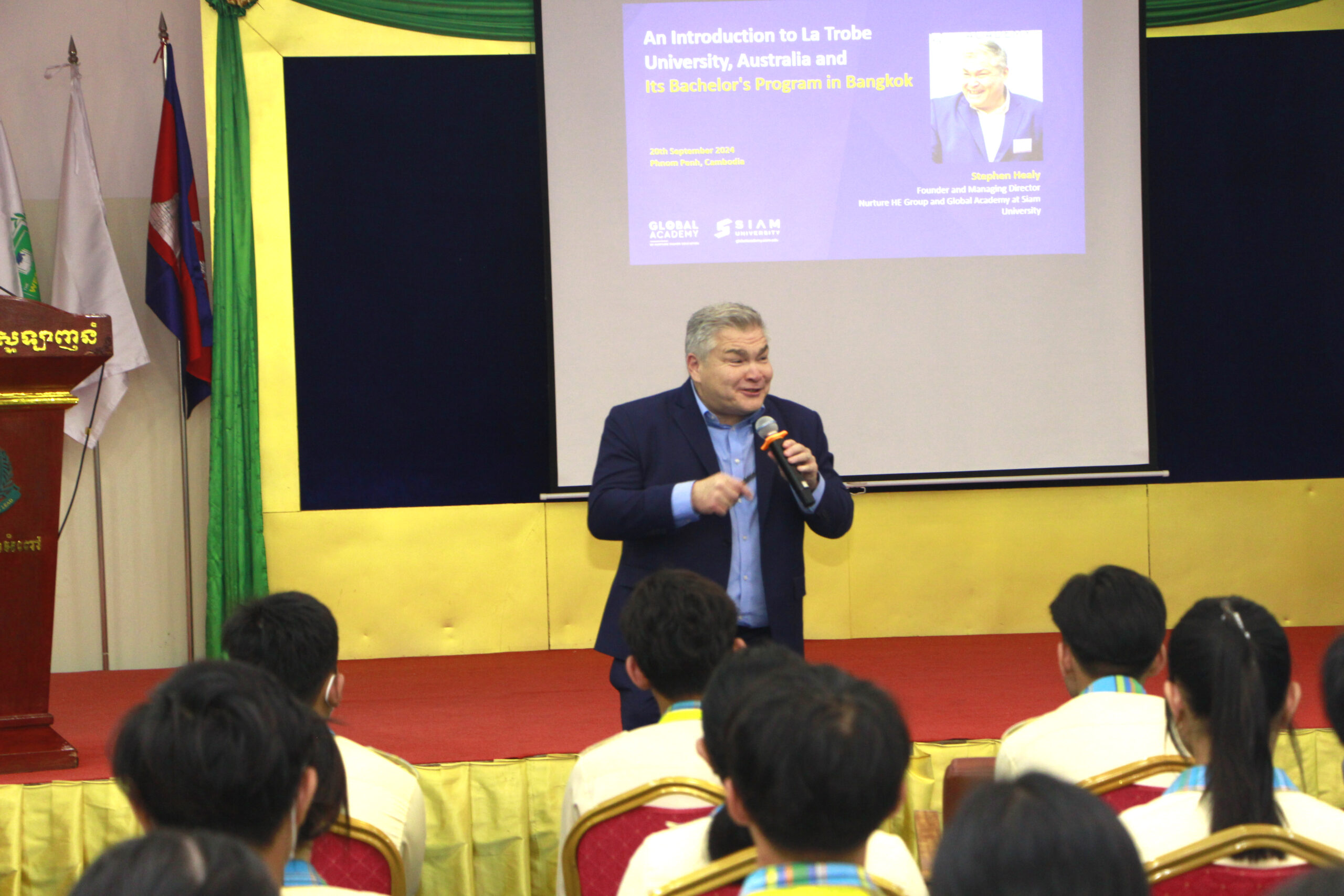 លោក Stephen Healy បានលើកឡើង ថា លោកពិតថ្លែងអំណរគុណចំពោះការផ្តល់ឱកាសចែករំលែកពីឱកាសសិក្សា និងអាហារូបករណ៍របស់ Global Academy នៅសាកលវិទ្យាល័យ Siam University ប្រទេសថៃ និងសាកលវិទ្យាល័យ La Trobe University ប្រទេសអូស្ត្រាលីដល់សិស្សានុសិស្សសាលារៀនវ៉េស្ទឡាញន៍។