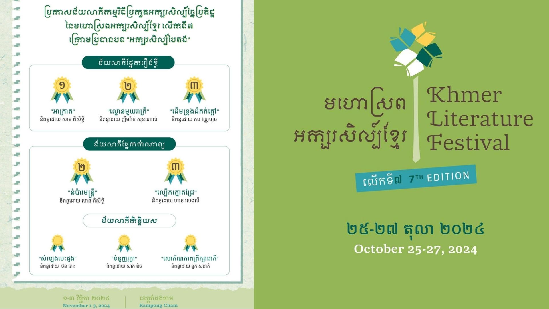 ក្រោយដំណើរការកម្មវិធីសរសេរតាមអានថ្នាក់ជាតិលើកទី១ «សំណេរអង្គរ» បានចាប់ផ្ដើមនៅស្ពានហាលប្រាសាទអង្គរវត្ត កាលពីថ្ងៃទី ២១ ខែមករា ឆ្នាំ២០២៤កន្លងទៅ ម្ចាស់ជ័យ...